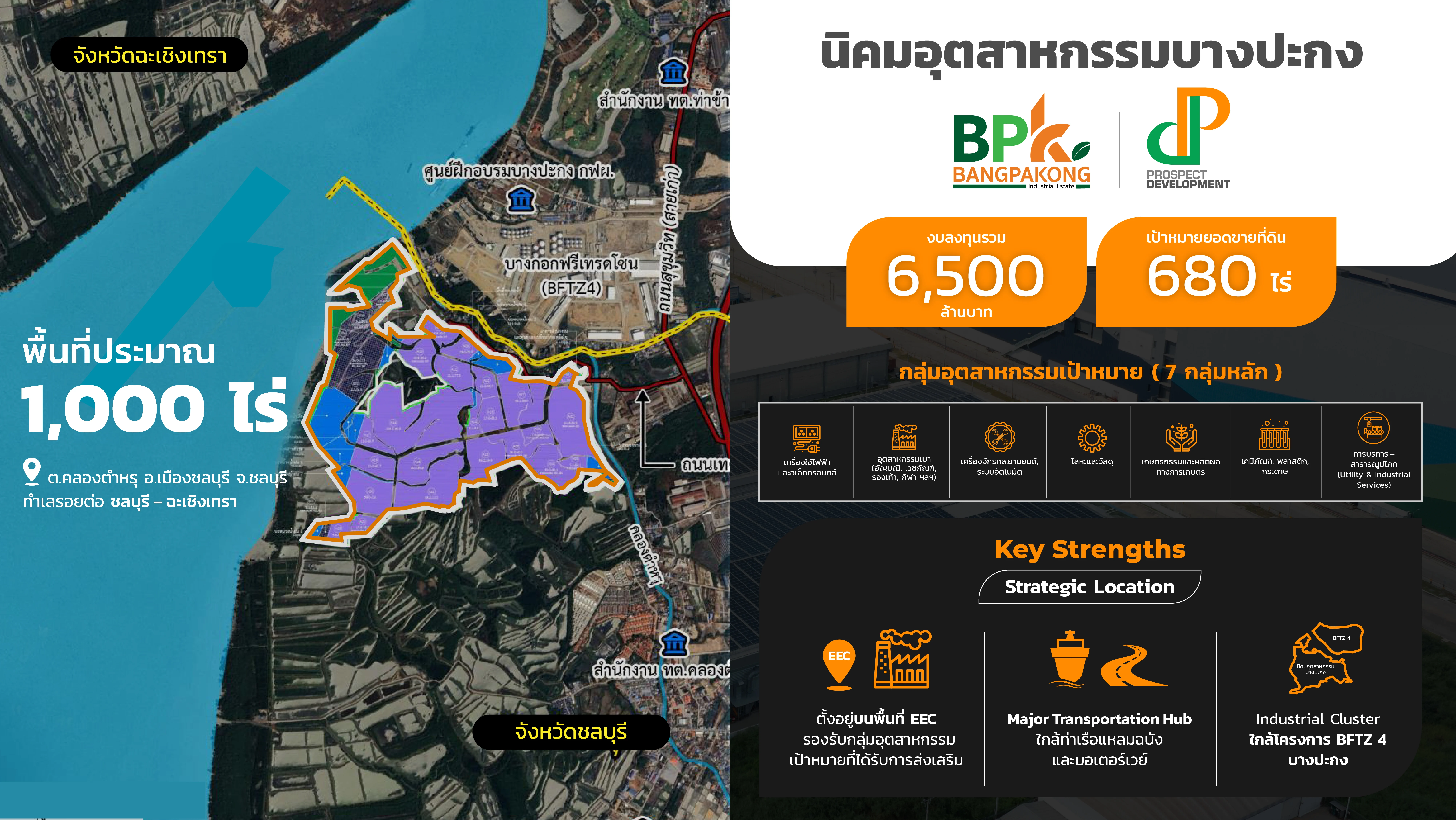 ล่าสุด กับการแถลงยุทธศาสตร์ ‘2025 Transformative Growth Mission’ เร่งเครื่องสู่ธุรกิจใหม่ “นิคมอุตสาหกรรมบางปะกง” อีกหนึ่งก้าวกระโดดของ PD ที่ต่อยอดจากความเชี่ยวชาญ ขยายสเกล มาทำธุรกิจนิคมอุตสาหกรรม บน Strategic Location เนื้อที่กว่า 1,000 ไร่ ตั้งอยู่ที่ ต.คลองตำหรุ อ.เมืองชลบุรี จ.ชลบุรี เชื่อมต่อการขนส่งที่สำคัญ ใกล้ท่าเรือแหลมฉบังและติดมอเตอร์เวย์ เชื่อมต่อสู่ภาคตะวันออกและประเทศเพื่อนบ้านอย่างไร้รอยต่อ พร้อมเติบโตไปกับพื้นที่ EEC ด้วยงบลงทุนกว่า 6,500 ล้านบาท เดินหน้าสร้างรายได้จากการขายที่ดินในรูปแบบนิคมอุตสาหกรรม