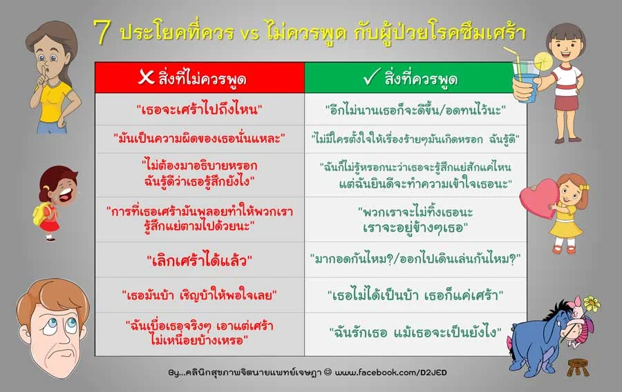 แต่การมีความทุกข์ มีความเศร้า ไม่ได้หมายความว่าคุณเป็นโรคซึมเศร้า หรือเป็นโรคจิตเสมอไป และโรคซึมเศร้ากับโรคจิตก็ไม่เหมือนกัน เพียงแต่คอยสังเกตตัวเองไว้บ้างก็ดี หากไม่แน่ใจ คนที่จะตอบคุณได้ดีที่สุดก็คือ “หมอ”