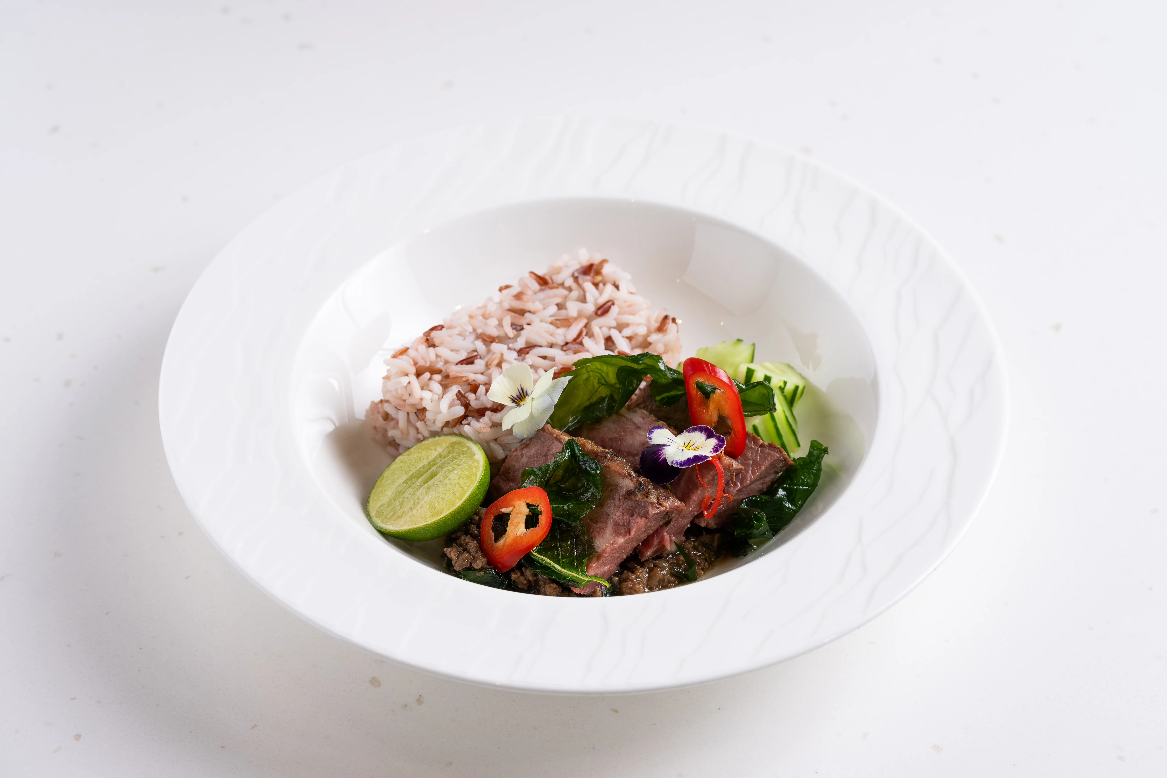 เชฟต้น ผู้เชี่ยวชาญด้านอาหารประจำร้าน ฤดู (Le Du) และ นุสรา (Nusara) ร้านอาหารชั้นนำของเอเชีย ได้ถ่ายทอดความคิดสร้างสรรค์และนวัตกรรมสู่กาตาร์ แอร์เวย์ส เพื่อมอบประสบการณ์การรับประทานอาหารบนเครื่องบินชั้นเยี่ยม โดยเมนูชุดใหม่นี้จะพร้อมให้บริการในเที่ยวบิน กรุงเทพฯ-โดฮา บนห้องโดยสารชั้นหนึ่งและชั้นธุรกิจ ตั้งแต่วันที่ 1 สิงหาคม 2567 เป็นต้นไป โดยเมนูสุดเอ็กซ์คลูซีฟนี้ประกอบไปด้วย อาหารเรียกน้ำย่อยสุดพรีเมียมอย่าง ยำถั่วพลูล็อบสเตอร์ ต้มข่าแบบโบราณกับปลาสลิด สำหรับเมนูอาหารจานหลัก ได้แก่ แกงเขียวหวานไก่ใส่มะเขือย่าง หรือข้าวกะเพราซี่โครงเนื้อวากิว ปิดท้ายด้วยขนมหวานอย่างพานาคอตต้ามะพร้าวอ่อน มะนาวและแยมสับปะรด
