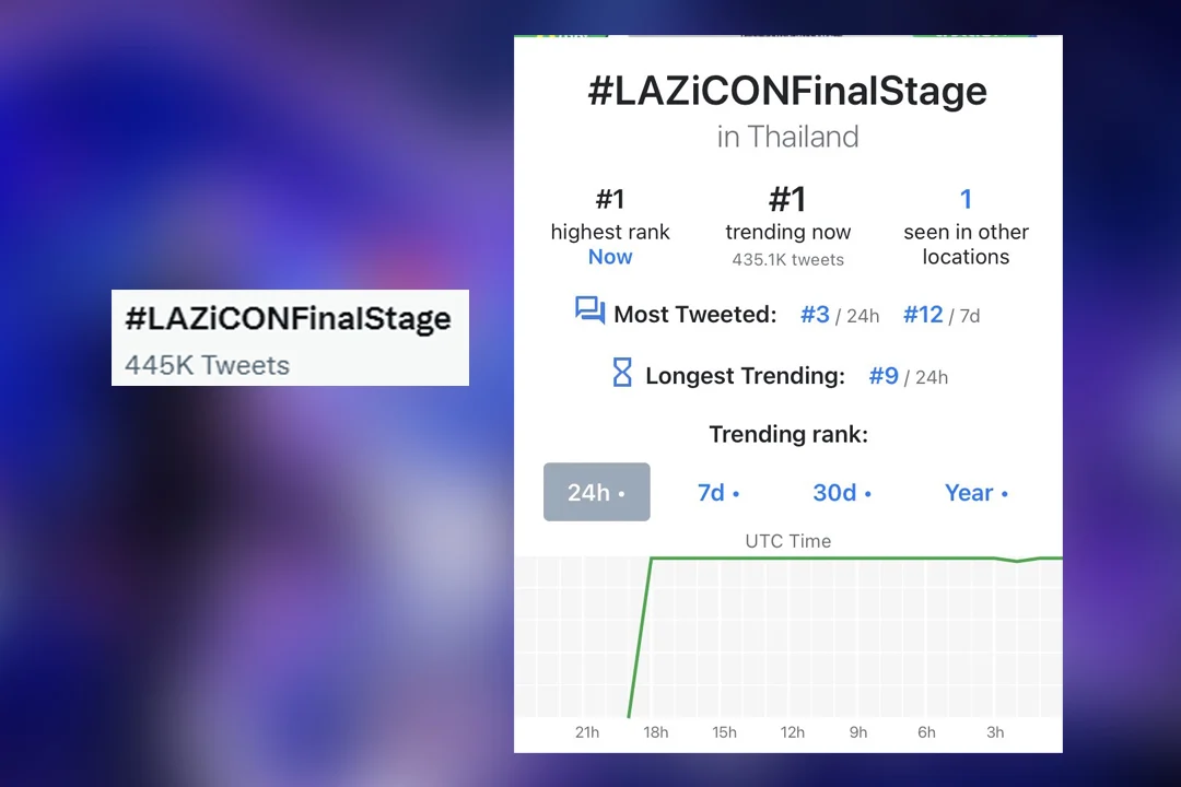 สำหรับการแข่งขันในรอบ The Final Stage เด็กฝึกทั้ง 18 คนมาพร้อมกับโชว์ที่พร้อมเรียกเสียงกรี๊ดและคะแนนโหวตครั้งสุดท้าย เริ่มที่กลุ่มแรก ที่นำทีมโดย ‘ต้าห์อู๋ ออฟโรด แฟรงค์ ชีต้า เป็นต่อ ตั้งต้น’ กับโชว์ในเพลง มูเตลู จากวง PiXXiE ตามมาด้วยกลุ่มที่สอง ‘เฟิร์ส ไดร์ม่อน สมุย เชสเตอร์ สมาร์ท พรู’ กับเพลงพิงของ นนท์ ธนนท์ และโชว์จาก ‘ตะแตม บี เจลเลอร์ ไม้เอก บุญ หมีพูห์’ ในเพลง เสือสิ้นลาย จากแรปเปอร์ F.HERO เรียกได้ว่าเป็น Stage ส่งท้ายที่ร้อนแรงและเข้มข้นจนทำให้ #LAZiCONFinalStage ขึ้นไปอยู่ถึงอันดับที่ 1 เทรนด์ Twitter เลยทีเดียว