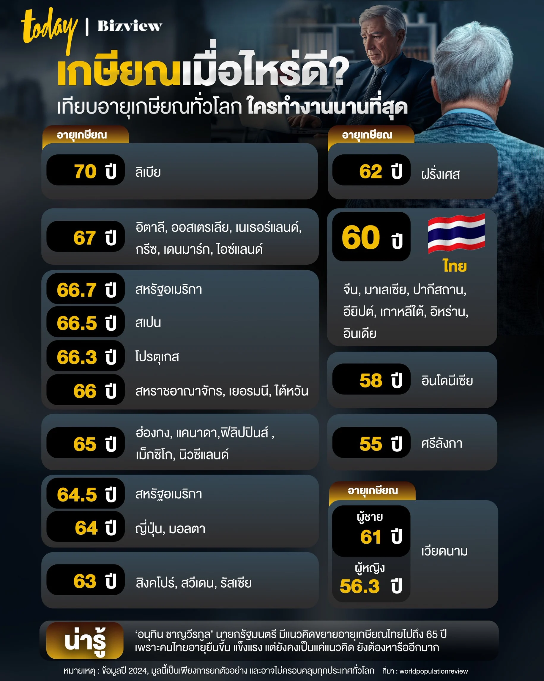 TODAY Bizview ชวนดูอายุเกษียณของแต่ปีประเทศทั่วโลก