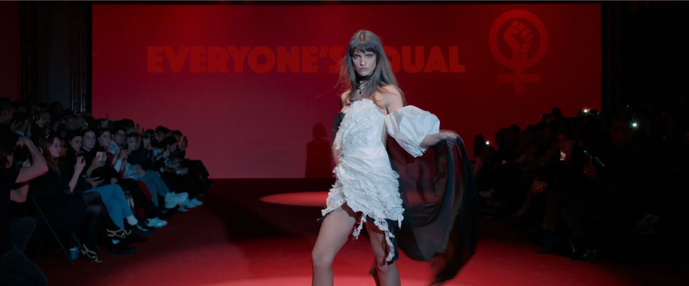 Triangle of Sadness ถูกแบ่งเรื่องเป็นสามองก์ ที่ปูเรื่องด้วยการนำเสนอความย้อนแย้งของนิยามของคำว่า ‘เท่าเทียม’ ในสมัยนี้ ในองก์แรกผ่านทางญาญ่า นางแบบสาวผู้ประสบความสำเร็จ และคาร์ล นายแบบหนุ่มผมทองตาฟ้าผู้กำลังอยู่ในช่วงขาลง กลิ่นไหม้ของการเสียดสีเริ่มฟุ้งมาตั้งแต่ตอนแรกในฉากที่คาร์ลไปแคสต์งาน และชัดจนเตะจมูกในฉากการเดินแบบของญาญ่าที่ คำว่าเท่าเทียม นั้นถูกนำไปฉายขึ้นจอ ประหนึ่งคำนี้เป็นแค่เทรนแฟชั่นที่ผ่านมาและอาจจะผ่านไปในซีซั่นหน้า ก่อนจะกระจายไปทั่วใน ฉากมี้ออาหารของทั้งสองที่นำมาสู่การทุ่มเถียงกันเรื่องเงิน สิ่งที่จำเป็นต่อการดำรงชีวิตและธำรงชีวิตคู่ แต่คนไม่พูดกันเพราะพอพูดเรื่องเงินมันทำให้คนดู ‘ไม่เซ็กซี่’ และการที่ญาญ่าถึงจะบอกว่าเธอใจกว้างและรักความเท่าเทียม แต่ก็ยังอยากให้คาร์ลจ่ายค่าอาหารและการกินอยู่ของเธออยู่ดีก็ สะท้อนความย้อนแย้งของผู้หญิงบางกลุ่มที่เรียกร้องความเท่าเทียมแต่เมื่อมาถึงเรื่องเงินกลับต้องการให้ผู้ชายเลี้ยง ส่วนอาการรักษาหน้าและโกรธเพราะอีโก้ความเป็นชายมันถูกท้าทายในช่วงหลังขององก์แรกนั้นก็สื่อถึง ความต้องการความเท่าเทียมในเรื่องเงิน แต่ก็ยังคงกระหายสภาวะผู้นำและคนหาเลี้ยงอยู่ในส่วนลึก และการคืนดีของทั้งสองคนเพื่อรักษาภาพลักษณ์ในโซเชียลมีเดียและผลประโยชน์ของทั้งสองฝ่ายก็เป็นการเสียดสีค่านิยมด้านความรักของคนในยุคนี้ได้อย่างแสบสันต์