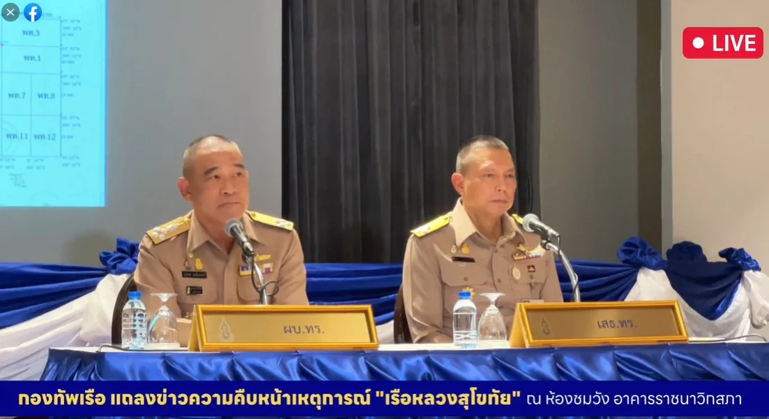 อัปเดตก่อน 3 ทุ่ม สรุปค้นหาผู้ประสบภัยเหตุ ‘เรือหลวงสุโขทัย’ วันนี้ พบ 7 นาย รอดชีวิต 1 นาย ‘ผบ.ทร.’ ยอมรับ กำลังพล 30 นายบนเรือไม่มีเสื้อชูชีพจริง พร้อมแจงตัวเลขมี 12 นายที่ไม่มีเสื้อชูชีพรอดชีวิตมาได้