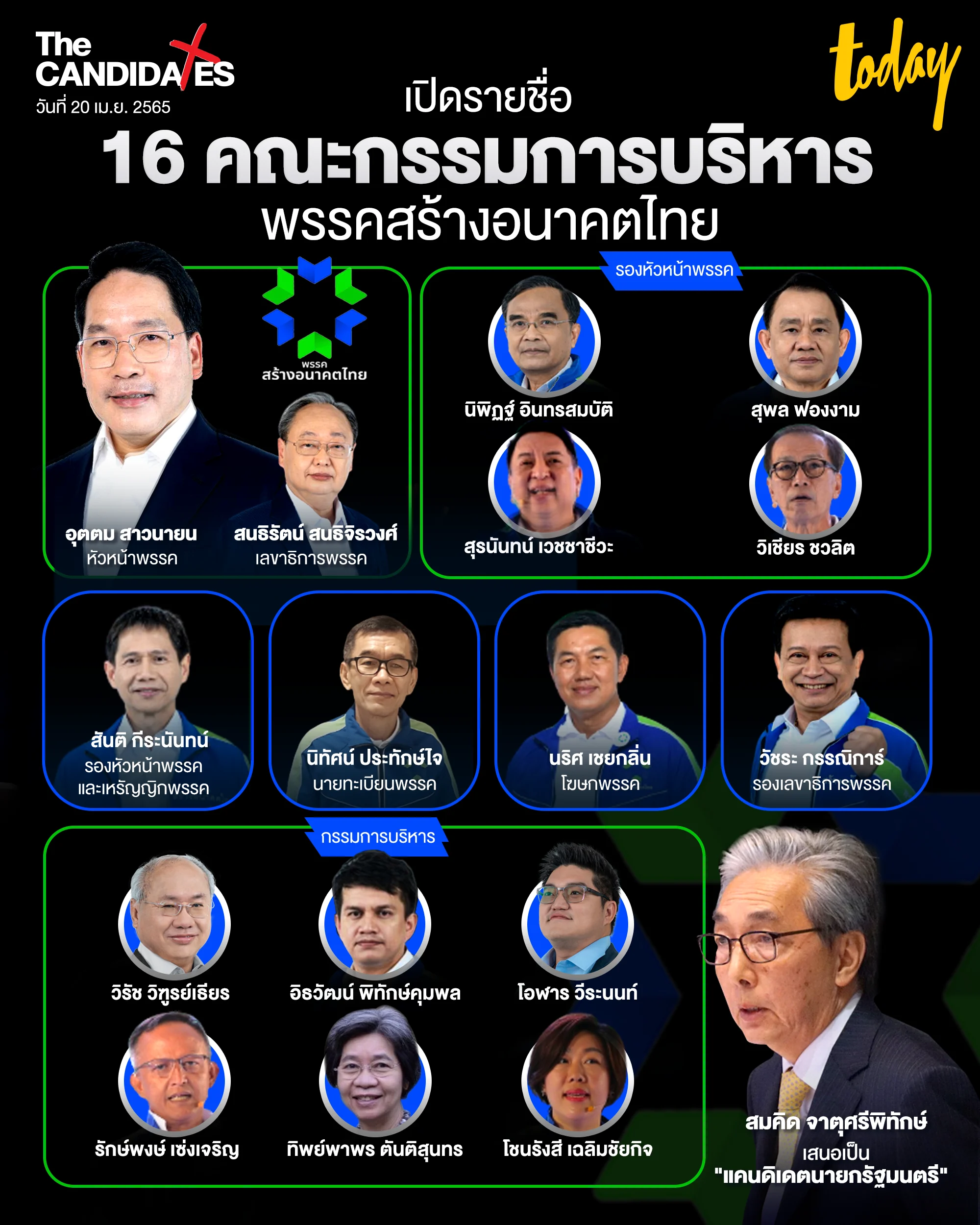 ขณะที่ วาระการเลือกตั้ง คณะกรรมการบริหารพรรคสร้างอนาคตไทยชุดใหม่ ที่ประชุมมีมติเลือกตั้งคณะกรรมการบริหารจำนวน 16 คน โดยมีรายละเอียด ดังนี้