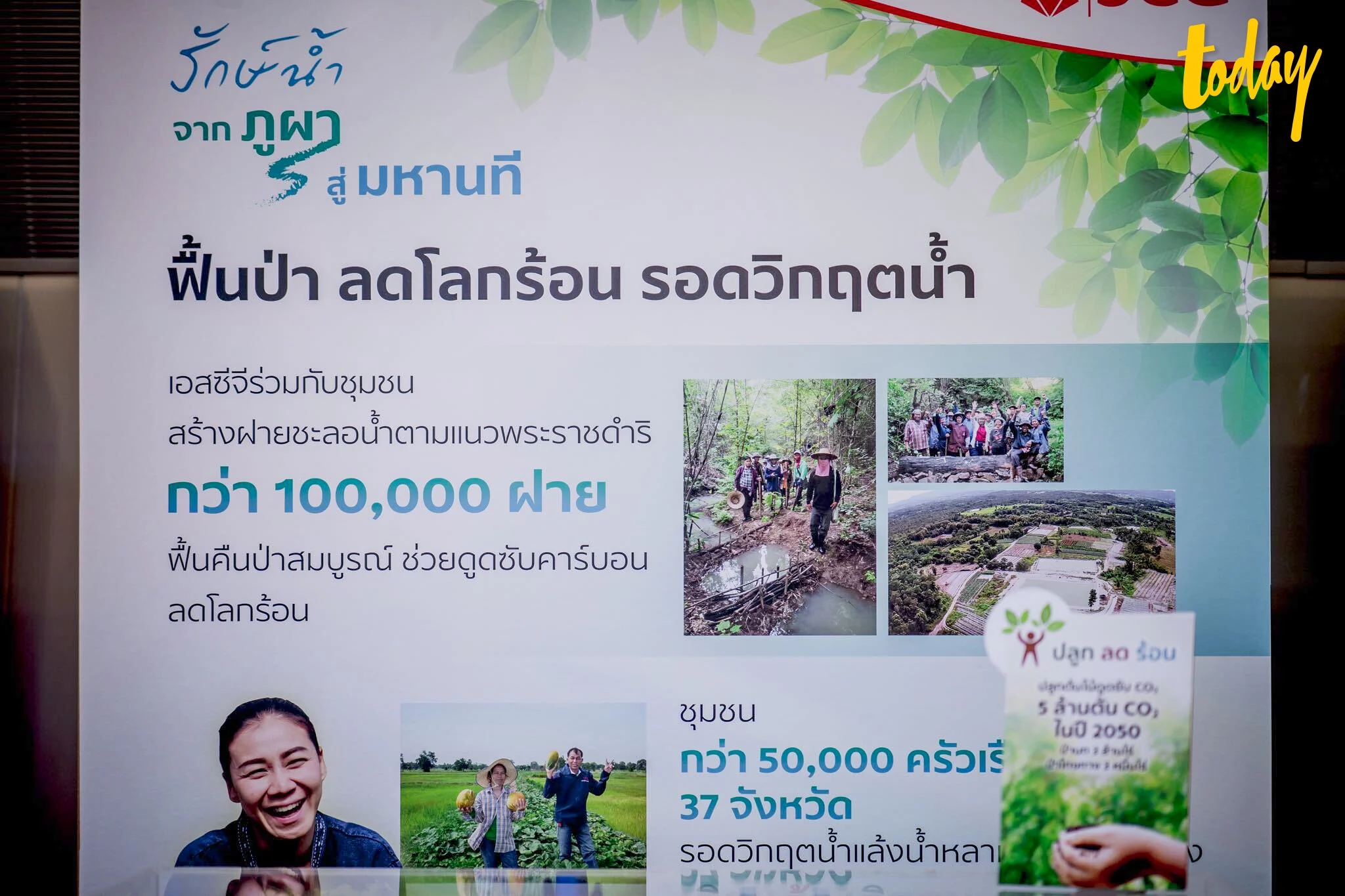 รวมถึงการปลูกต้นไม้ลดโลกร้อน ทั้งในไทยและอาเซียน เพื่อดูดซับคาร์บอนไดออกไซด์ให้ได้ 5 ล้านตัน สร้างฝายชะลอน้ำเพิ่มเป็น 130,000 ฝาย เพื่อฟื้นความอุดมสมบูรณ์ให้ป่าต้นน้ำ และขยายชุมชนการจัดการน้ำยั่งยืนให้ครอบคลุม 50 จังหวัดทั่วประเทศ