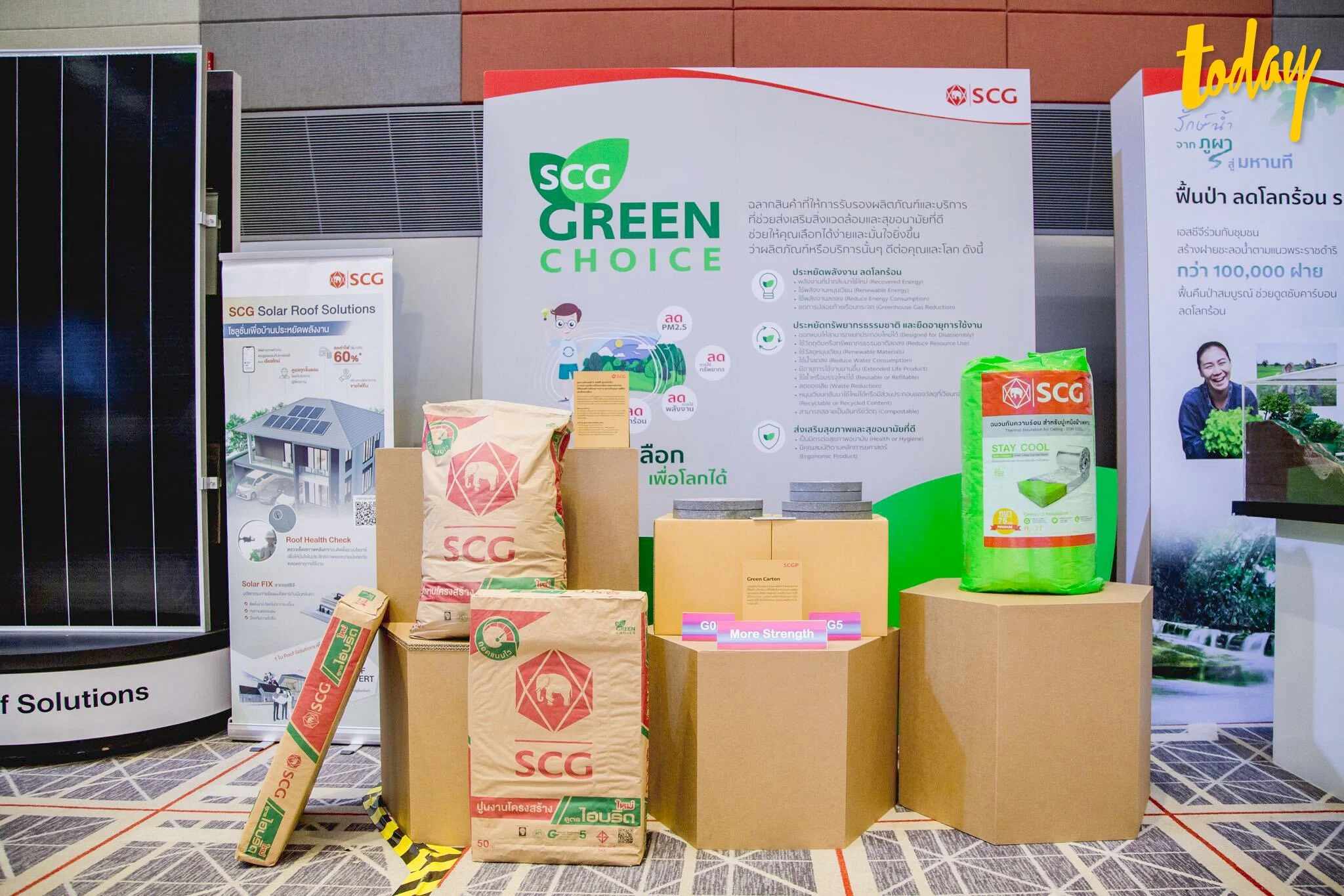 ไม่ว่าจะเป็นการเพิ่มสัดส่วนผลิตภัณฑ์ฉลาก SCG Green Choice เป็น 2 เท่า จากร้อยละ 32 เป็นร้อยละ 67 ภายในปี 2030 เช่น ปูนงานโครงสร้าง เอสซีจี สูตรไฮบริด นวัตกรรมปูนซีเมนต์รักษ์โลกที่ลดการปล่อยก๊าซคาร์บอนไดออกไซด์ในกระบวนการผลิตได้จำนวนมาก หรือ SCG Solar Roof Solutions ส่งเสริมการใช้พลังงานแสงอาทิตย์ ด้วยการติดตั้งแผงโซลาร์บนหลังคาบ้าน ที่จะช่วยลดค่าไฟในระยะยาวได้ถึงเดือนละ 1,400 – 1,900 บาท เป็นต้น