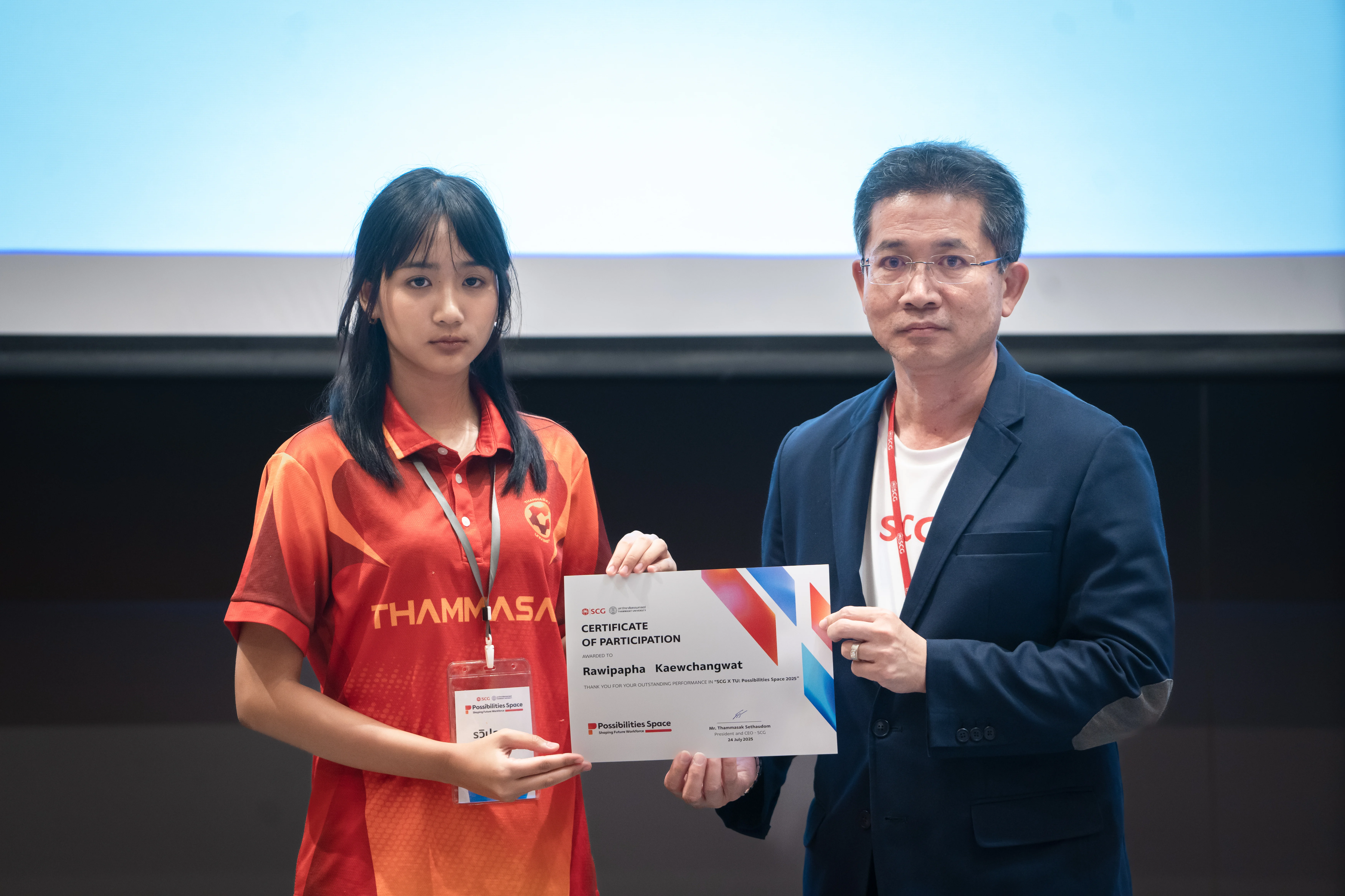 ‘ธรรมศักดิ์ เศรษฐอุดม’ กรรมการผู้จัดการใหญ่ เอสซีจี กล่าวว่า “SCG เชื่อว่า ‘คน’ คือหัวใจสำคัญของการขับเคลื่อนองค์กรและประเทศสู่การเติบโตอย่างยั่งยืน คนรุ่นใหม่เป็นคนมีของ มีพลัง และมองหาเวทีปล่อยพลัง ซึ่งสอดคล้องกับแนวทางของเอสซีจีในฐานะ ‘องค์กรแห่งโอกาส’ ที่เปิดพื้นที่ให้คนได้ลองคิด ลองทำ สร้างสรรค์สิ่งใหม่ ขับเคลื่อนองค์กรให้ทันโลกที่เปลี่ยนไว โครงการนี้จึงเป็นเวทีให้นักศึกษาได้สัมผัสประสบการณ์ทำงานจริง พัฒนาทักษะที่จำเป็น และนำเสนอไอเดียพัฒนานวัตกรรมเพื่อสังคมและสิ่งแวดล้อมที่อาจต่อยอดได้จริง ขอบคุณมหาวิทยาลัยธรรมศาสตร์ที่ให้เอสซีจีมีส่วนร่วมพัฒนาหลักสูตรการเรียนรู้ที่ตอบโจทย์โลกการทำงาน ไม่ใช่แค่ฝึกงานหรือสหกิจศึกษา แต่เป็นการปูทางสู่การสร้าง Future Workforce บุคลากรคุณภาพที่จะร่วมสร้างอนาคตของประเทศไปด้วยกัน”