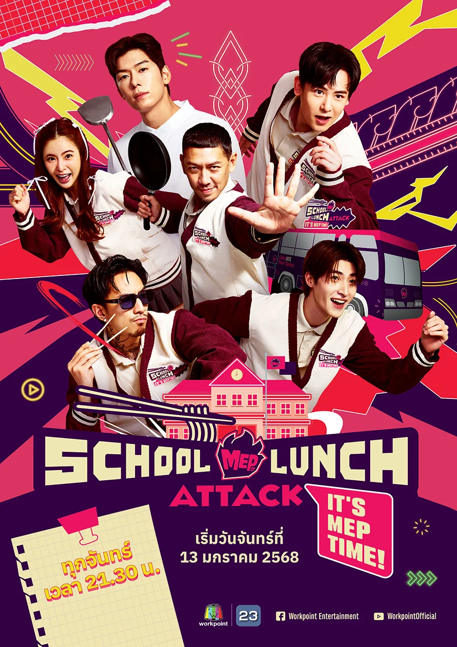เตรียมพบกับความสนุก พร้อมสัมผัสรสชาติความเผ็ดร้อน ไปพร้อมกันในรายการ ‘School Lunch Attack It’s MEP Time!’ ออกอากาศทุกวันจันทร์ เวลา 21.30 น. เริ่มตอนแรก 13 มกราคม 2568 นี้ ทางช่องเวิร์คพอยท์ 23 และสามารถรับชมย้อนหลังได้ทาง Facebook : Workpoint Entertainment และ Youtube : WorkpointOfficial