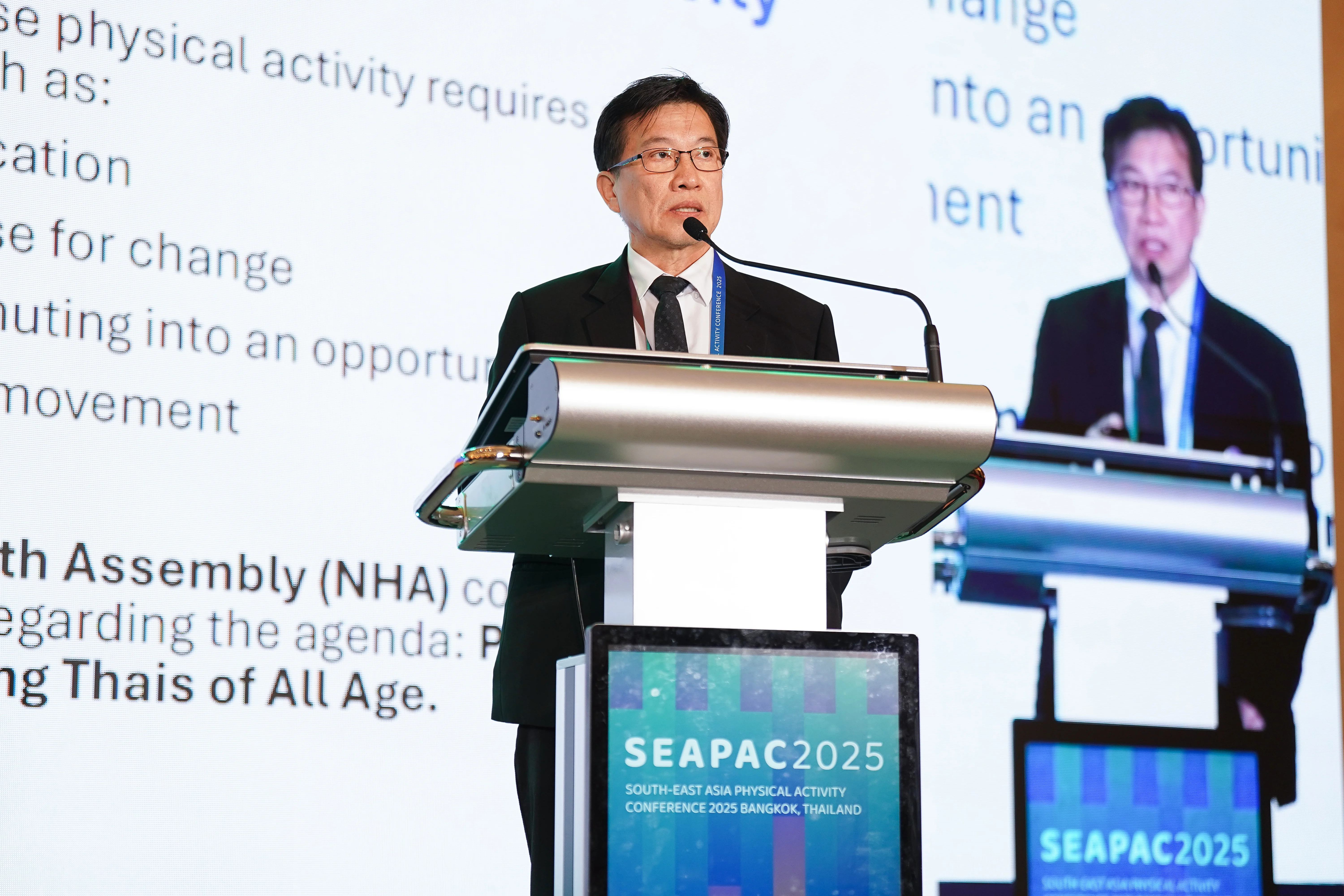 สำนักงานกองทุนสนับสนุนการสร้างเสริมสุขภาพ (สสส.) ตระหนักถึงความท้าทายนี้ จึงได้จัดเวทีสัมมนา กิจกรรมทางกายในภูมิภาคเอเชียตะวันออกเฉียงใต้ 2025 (South-East Asia Physical Activity Conference 2025: SEAPAC 2025) ในหัวข้อ “การพัฒนานโยบายสาธารณะเพื่อส่งเสริมวิถีชีวิตสุขภาวะ” เพื่อผนึกกำลังนักวิชาการและผู้เชี่ยวชาญจากหลายภาคส่วน มานำเสนอข้อมูลสำคัญ แนวทาง และความสำเร็จในการขับเคลื่อนนโยบายเพื่อสร้างสภาพแวดล้อมที่เอื้อต่อการมีสุขภาพที่ดี