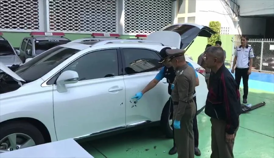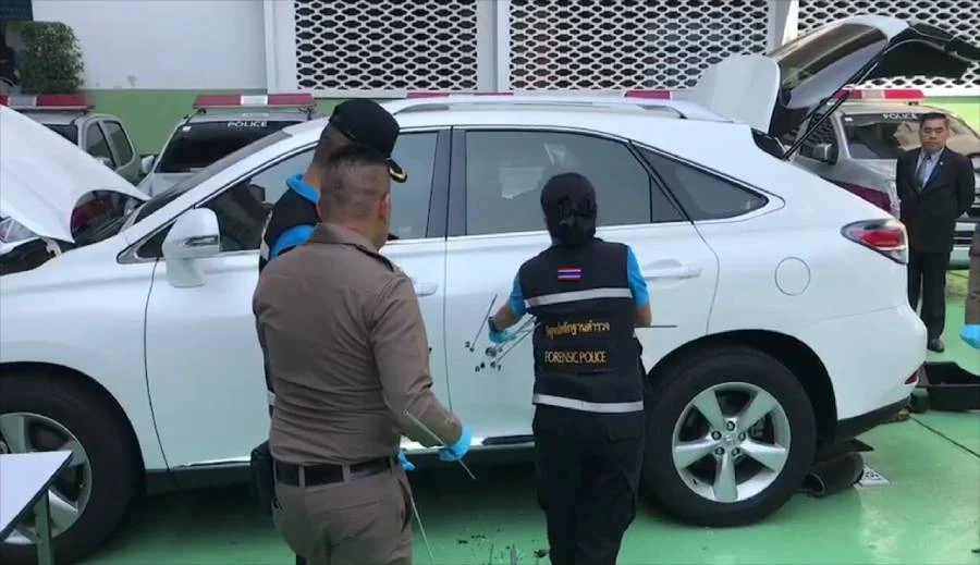 ส่วนหัวกระสุนที่ตรวจพบในรถยนต์วันนี้ พบเพิ่มอีก 6 หัวกระสุน เป็นชนิด .38 หรือขนาด 9 มม. จากที่เดิมพบแล้ว 2 หัวกระสุน แต่ยังไม่ยืนยันว่ามาจากปืนกระบอกเดียวกันหรือไม่ ซึ่งเตรียมส่งตรวจทางนิติวิทยาศาสตร์เพิ่มเติม จึงสามารถยืนยันชนิดของปืนที่ใช้ก่อเหตุได้