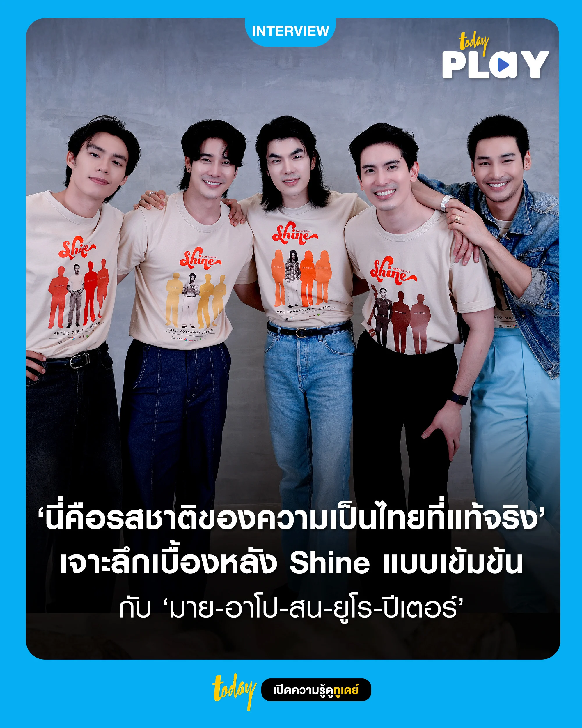งานนี้ มาย ภาคภูมิ ร่มไทรทอง, อาโป ณัฐวิญญ์ วัฒนกิติพัฒน์, สน ยุกต์ ส่งไพศาล, ยูโร ยศวรรธน์ ทะวาปี และ ปีเตอร์ เดอร์รี่ 5 นักแสดงจากซีรีส์ ‘Shine’ จะมาเล่าถึงจุดเริ่มต้น ‘Shine’ Original Gay Series พร้อมเผยถึงความเข้มข้นของตัวละคร รวมถึงหนึ่งฉากที่ประทับใจจนรู้สึกว้าว