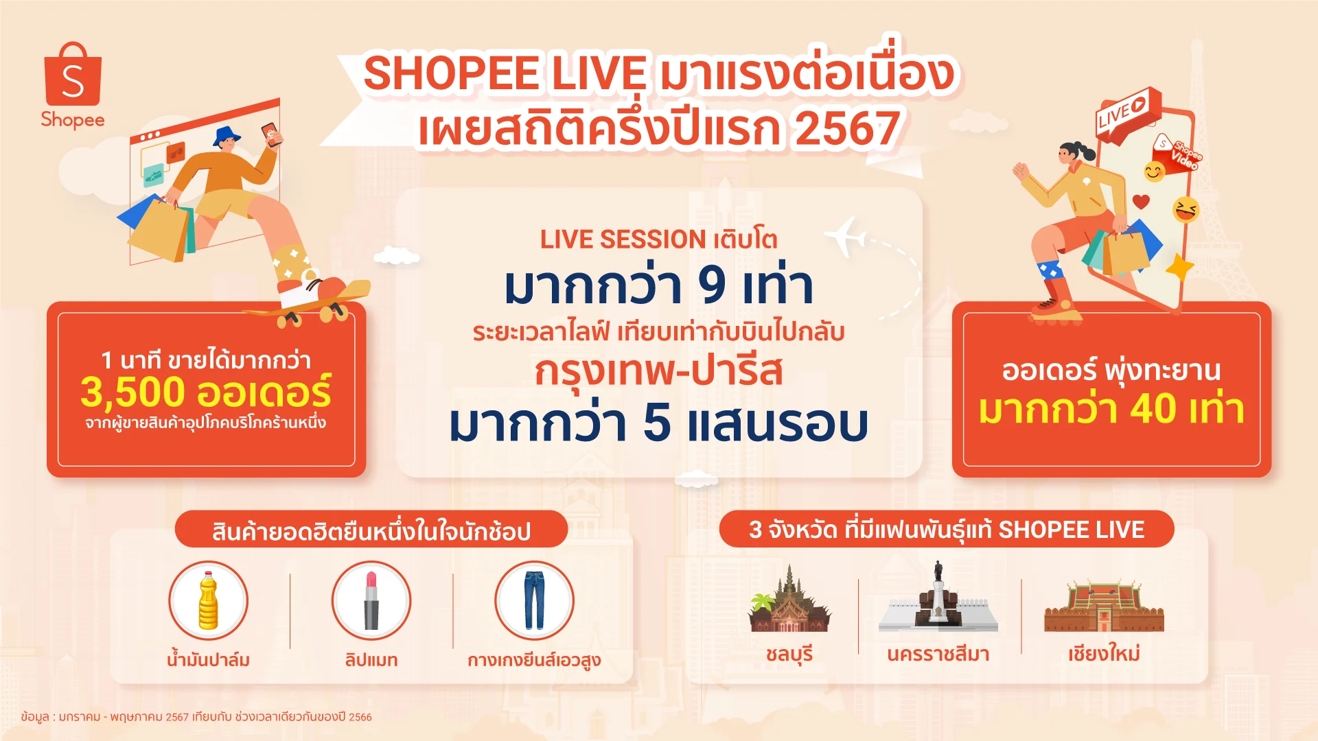 ช้อปปี้ ประเทยไทย เผยสุดยอดสถิติ ‘Shopee Live’ ในช่วงต้นปี 2567