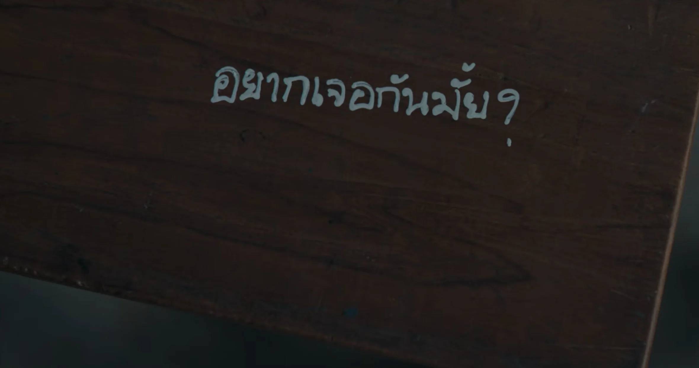 ในพาร์ทมิวสิควิดีโอเล่าเรื่องราวความรักในช่วงวัยมัธยมของชายหญิงคู่หนึ่ง ที่ไม่เคยได้เจอหน้ากัน ได้แต่พูดคุยกันผ่านการวาดรูป หรือเขียนข้อความไว้บนโต๊ะเรียนด้วยลิควิด การที่เราคุยกันแบบนี้ทุกวันมันทำให้ฉันเริ่มรู้สึกดี และเผลอคิดไปเองว่าเธอคงมีใจให้กัน แต่แล้วเมื่อฉันขอเจอหน้าเธอ เธอก็ดันเงียบหายไป มันเลยทำให้ฉันต้องเดินผ่านห้องเรียนนั้น และหันไปมองที่โต๊ะตัวนั้นบ่อยๆ เพื่อหวังว่าฉันจะได้พบเธอสักวัน…