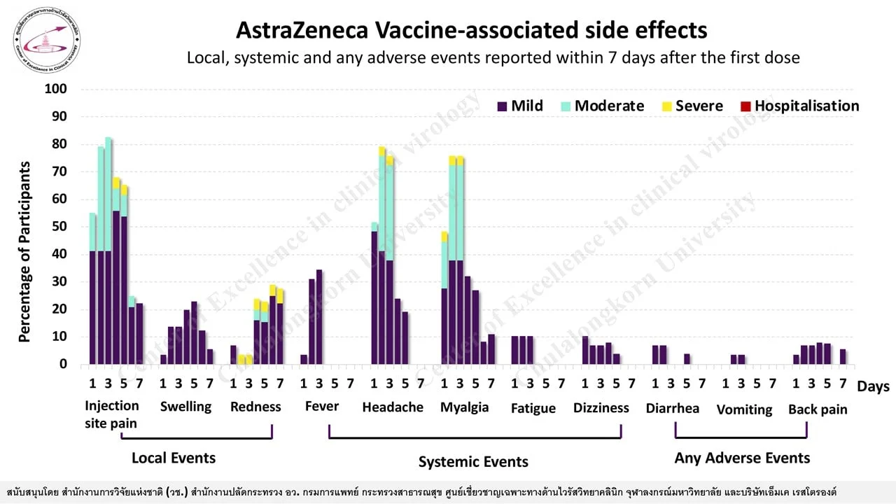 อาการที่เกิดขึ้นจากวัคซีนแอสตร้าเซนเนก้า จะพบว่าอายุน้อย มากกว่าผู้สูง อายุ และผู้หญิงจะมีอาการมากกว่าผู้ชาย ซึ่งเมื่อดูอาการข้างเคียงเปรียบเทียบกับวัคซีนที่ฉีดในต่างประเทศโดยเฉพาะวัคซีนในกลุ่ม mRNA แล้วไม่ต่างกันเลย