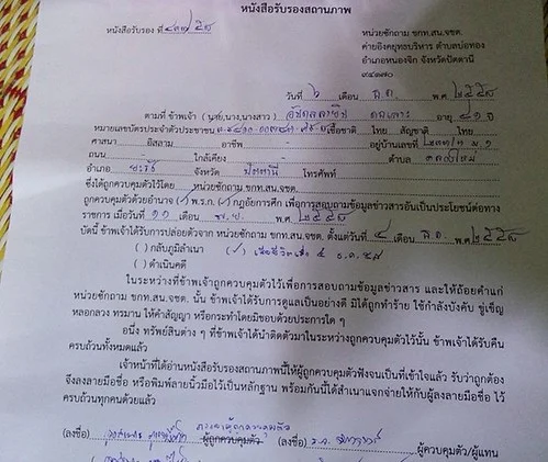 เอกสารยืนยันการเสียชีวิตของนายอับบดุลลายิ ดอเลาะ (ภาพจากประชาไท)