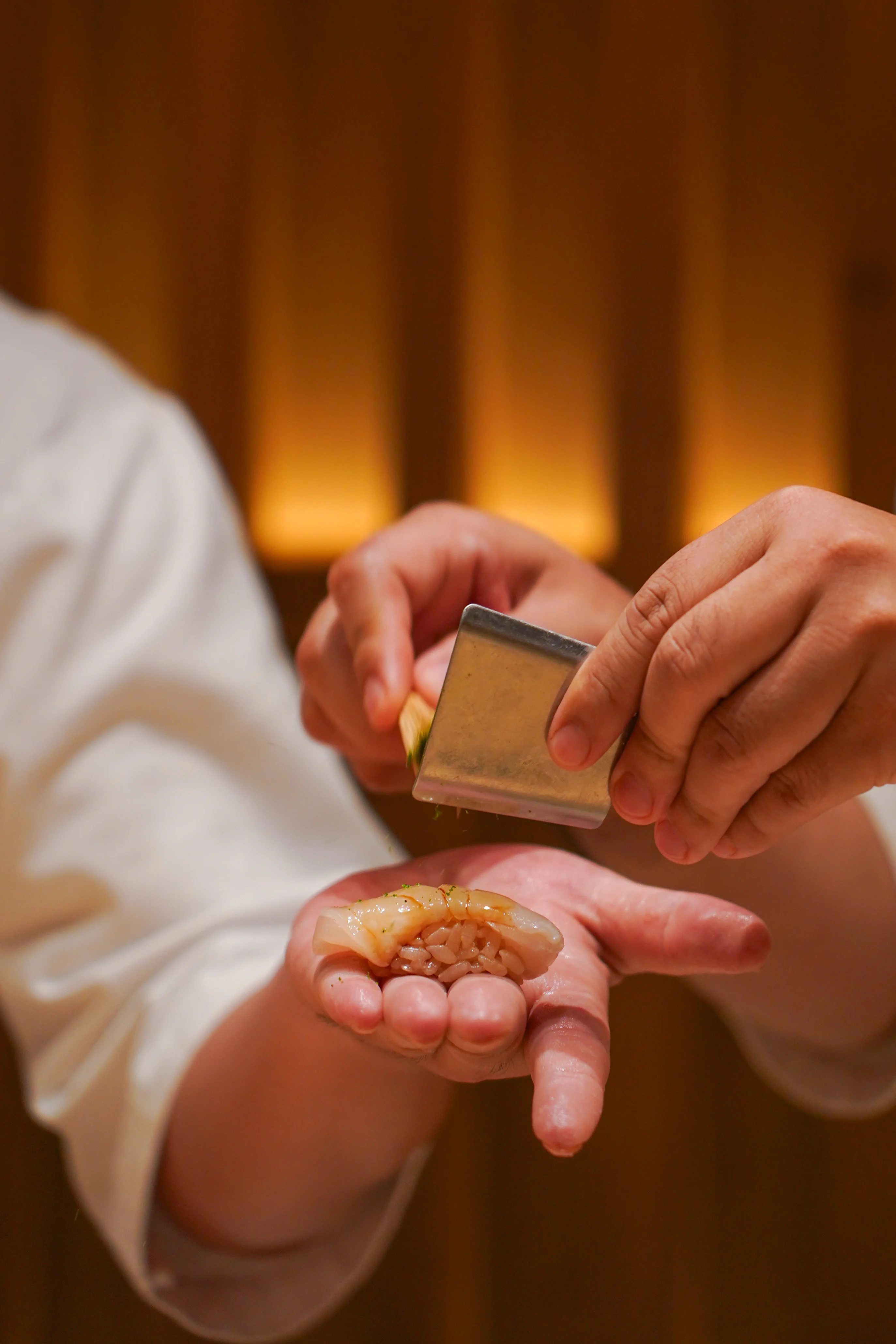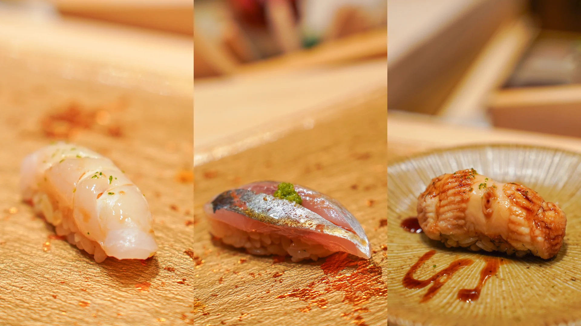 เริ่มที่ซาชิมิปลาเนื้อขาวในฤดูกาลสองชนิดอย่างปลา Suzuki และ Ishi Karei ให้รสชาติเบา ๆ และความอร่อยอยู่ที่เนื้อปลาที่ให้เนื้อสัมผัสที่ต่างกัน