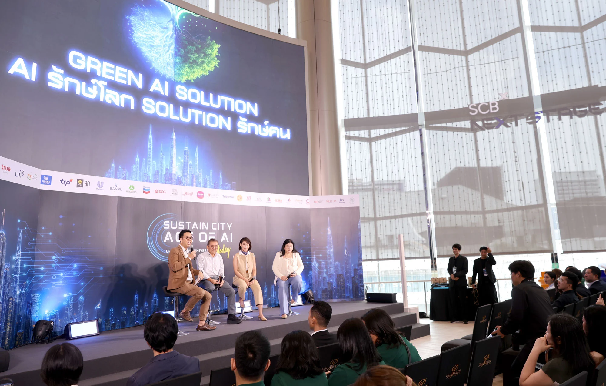 นอกจากนี้ ยังมีการเสวนาหัวข้อ “Green AI Solutions: AI รักษ์โลก Solution รักษ์คน” ผู้ร่วมเสวนา ประกอบด้วย รศ.ดร.เสรี ศุภราทิตย์ ประธานกรรมการบริหาร FutureTales Lab และผู้เชี่ยวชาญ IPCC (Intergovernmental Panel on Climate Change) ดร.รัสรินทร์ ชินโชติธีรนันท์ ประธานกรรมการบริหาร บริษัท ListenField และคุณณัฏฐิณี เนตรอำไพ ที่ปรึกษาอาวุโสด้านสื่อสารองค์กร องค์กรสัมพันธ์ และความยั่งยืน กลุ่มบริษัทยูนิลีเวอร์ ประเทศไทย