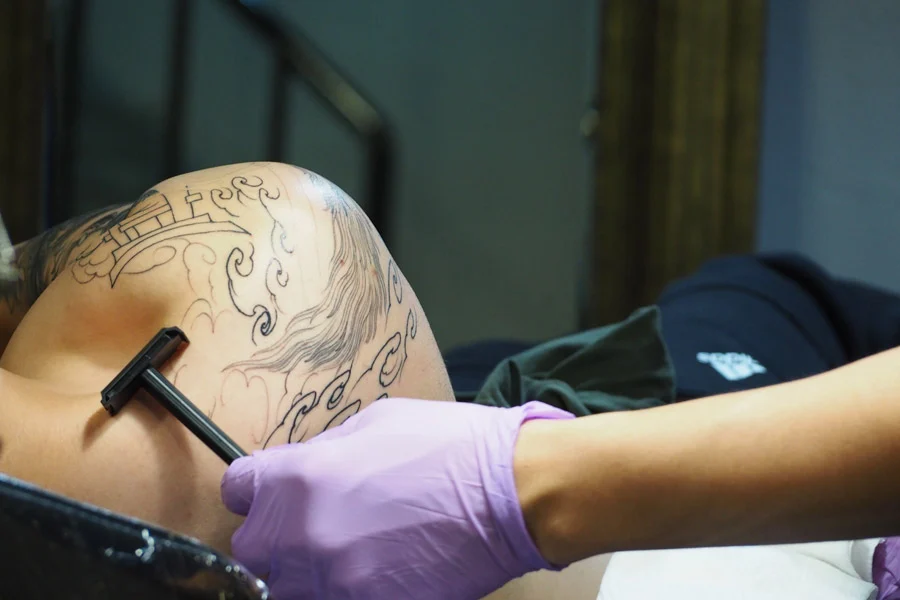ใช้มีดโกน โกนขนบริเวณที่จะสักออก