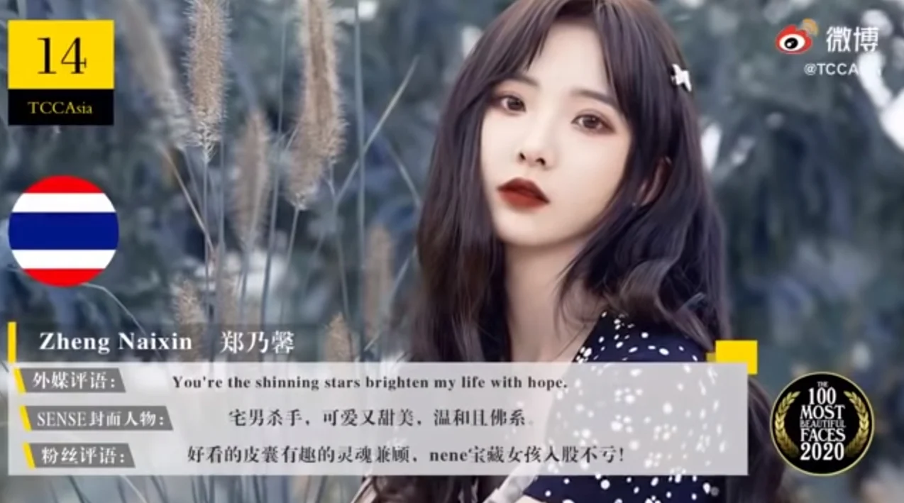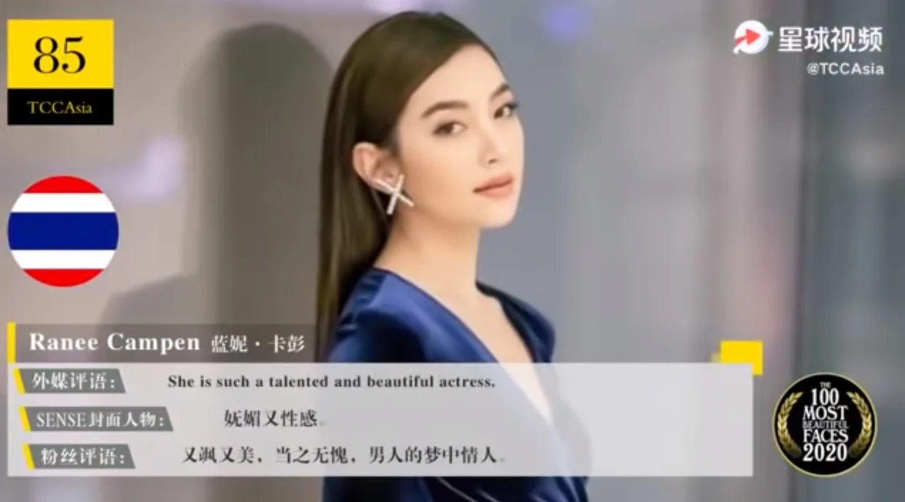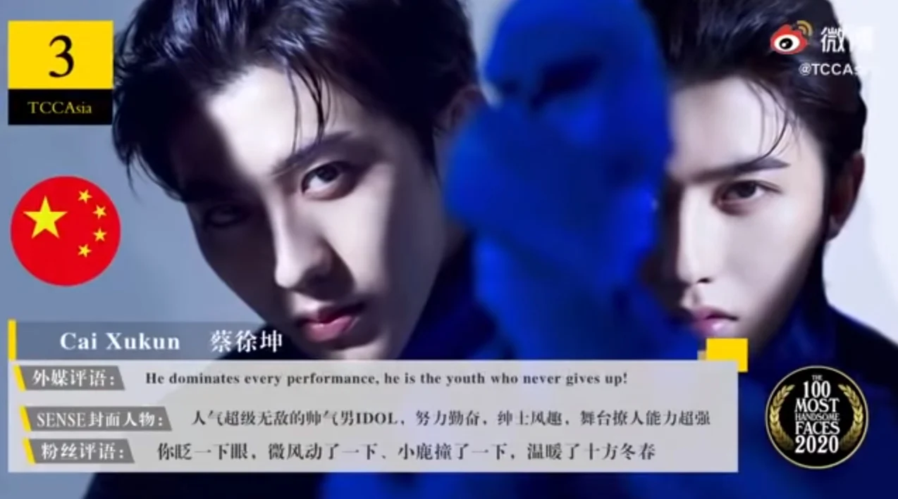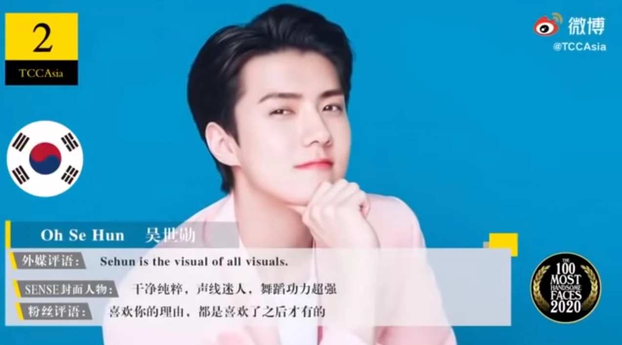 TCCAsia ประกาศ 100 อันดับ คนดังที่มีใบหน้าสวยและหล่อที่สุดในเอเชียปี 2020 ซึ่งอันดับ 1 คือ สาวลิซ่าจากวง BLACKPINK ในขณะที่ฝ่ายชายคือ เซียวจ้าน นักร้องและนักแสดงชาวจีนชื่อดัง