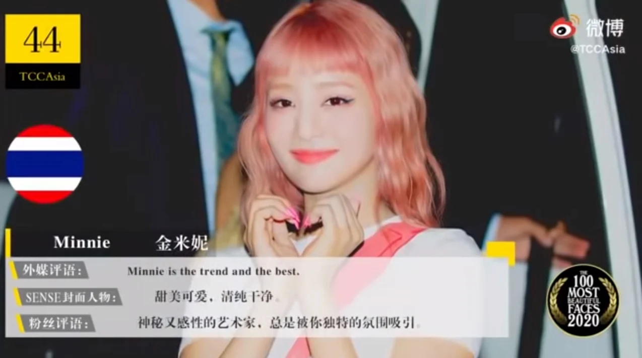 ทั้งนี้ยังมีสาวไทยอย่าง สาวเนเน่ พรนับพัน พรเพ็ญพิพัฒน์ หรือ เจิ้งหน่ายซิน หนึ่งในสมาชิกวง BonBonGirls อยู่ในอันดับที่ 14, มินนี่ ณิชา ยนตรรักษ์ หรือมินนี่ หนึ่งในสมาชิกวง (G)I-DLE อยู่ในอันดับที่ 44, บี น้ำทิพย์ จงรัชตวิบูลย์ อยู่ในอันดับที่ 68, ออม สุชาร์ มานะยิ่ง อยู่ในอันดับที่ 76, เบลล่า ราณี แคมเปน อยู่ในอันดับที่ 85 และ ใบเฟิร์น พิมพ์ชนก อันดับที่ 100