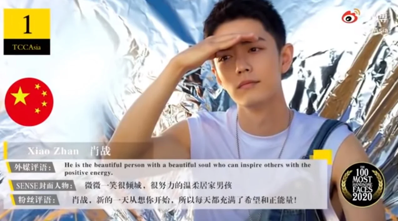 ในขณะที่ 100 อันดับ คนดังที่มีใบหน้าหล่อที่สุดในเอเชีย 2020 (100 most Handsome faces in Asia-Pacific 2020) เซียวจ้าน นักร้องและนักแสดงชาวจีนชื่อดัง คว้าอันดับ 1 ไปครอง