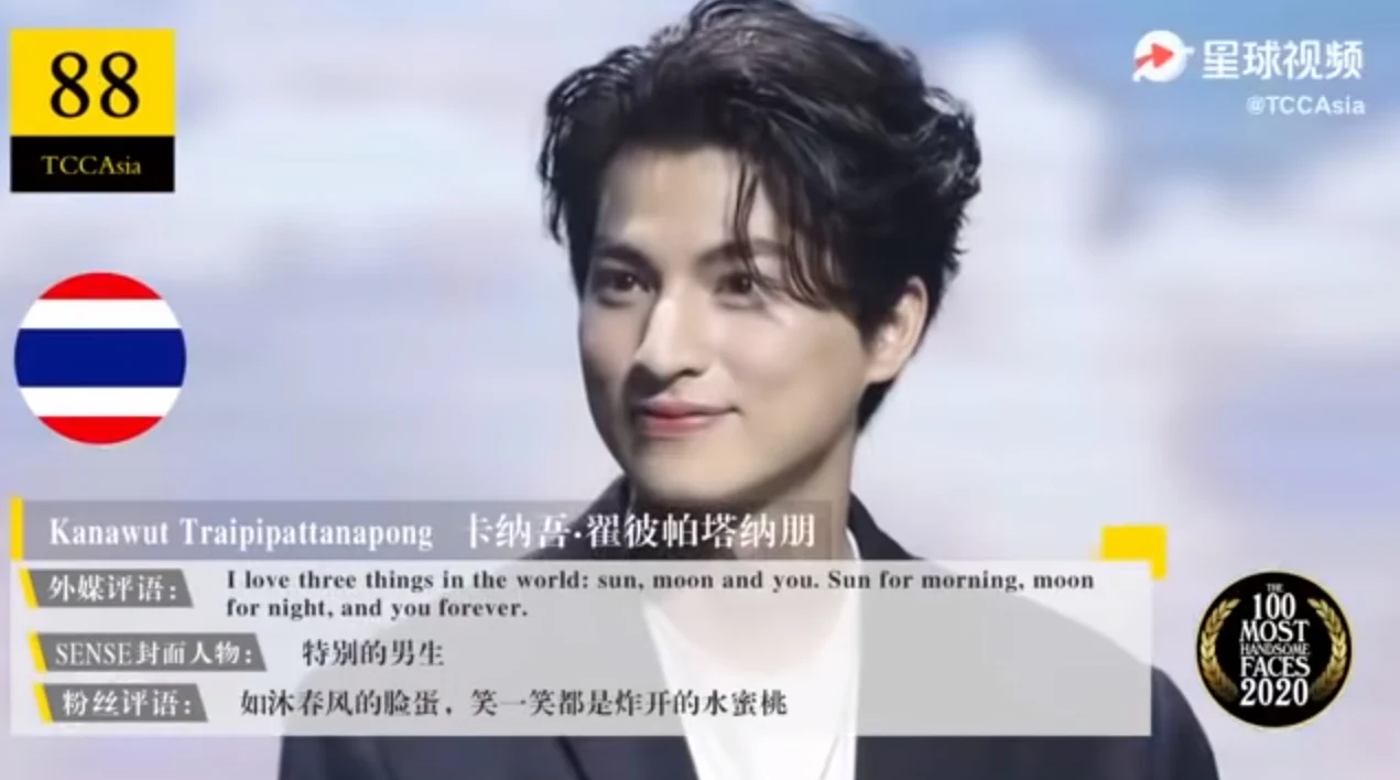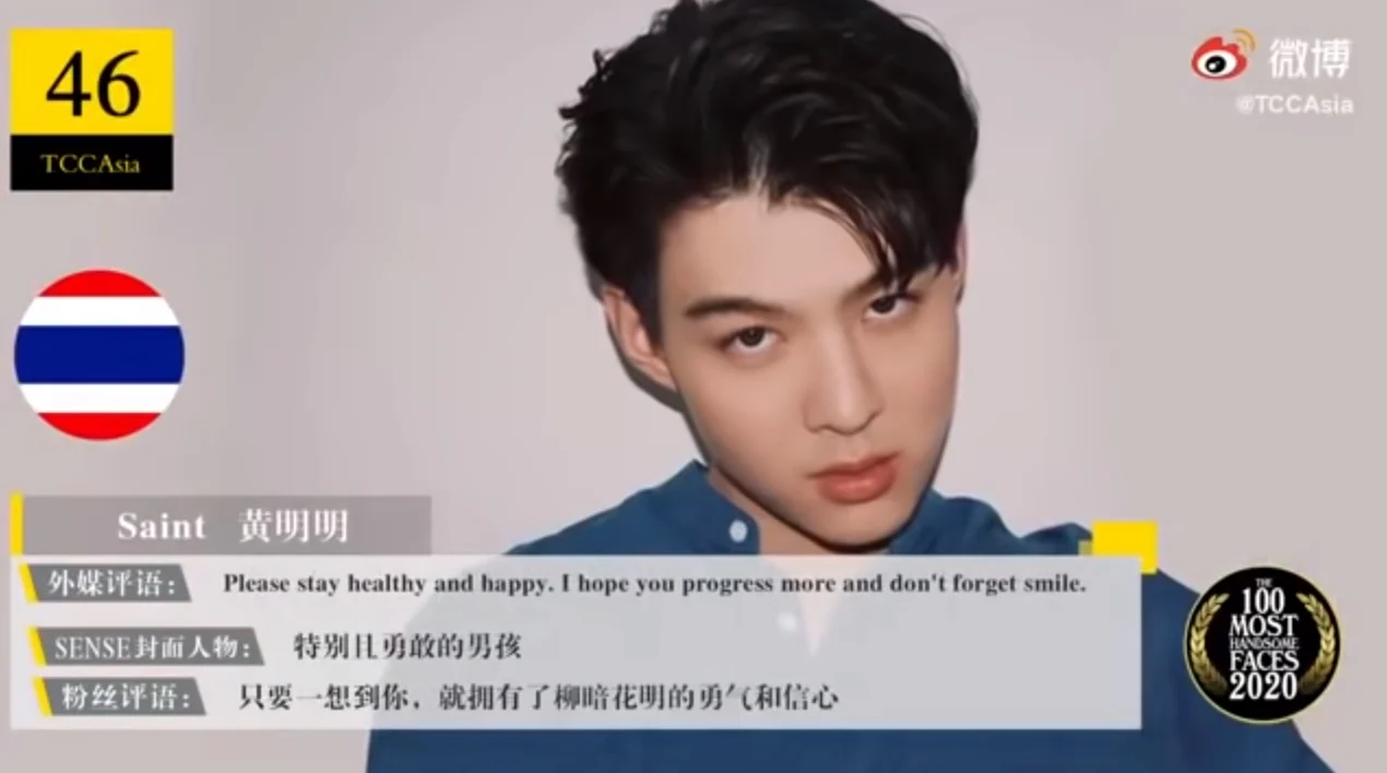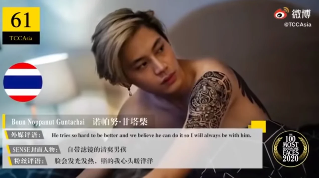 นอกจากนี้ยังมีหนุ่มไทยติดใน 100 อันดับ คนดังที่มีใบหน้าหล่อที่สุดในเอเชีย 2020อย่างหนุ่มเซ้นต์ ศุภพงษ์ อุดมแก้วกาญจนา อยู่ในอันดับที่ 46, บุ๋น นพณัฐ กันทะชัย อยู่ในอันดับที่ 61, บี้ ธรรศภาคย์ ชี หรือ บี้ KPN อยู่ในอันดับที่ 79, คริส พีรวัส แสงโพธิรัตน์ อยู่ในอันดับที่ 80, พุฒ พุฒิชัย อันดับที่ 85, นนกุล ชานน สันตินธรกุล อันดับที่ 87, กลัฟ คณาวุฒิ ไตรพิพัฒนพงษ์ อยู่ในอันดับที่ 88, มิว ศุภศิษฏ์ จงชีวีวัฒน์ อยู่ในอันดับที่ 93 และ เพิร์ธ ธนพนธ์ อันดับที่ 97