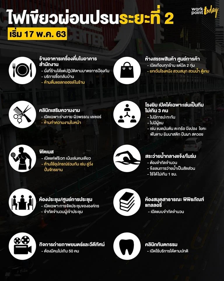 (กิจการ-กิจกรรม คลายล็อกเฟส 2 เปิดได้ตั้งแต่วันที่ 17 พ.ค.)