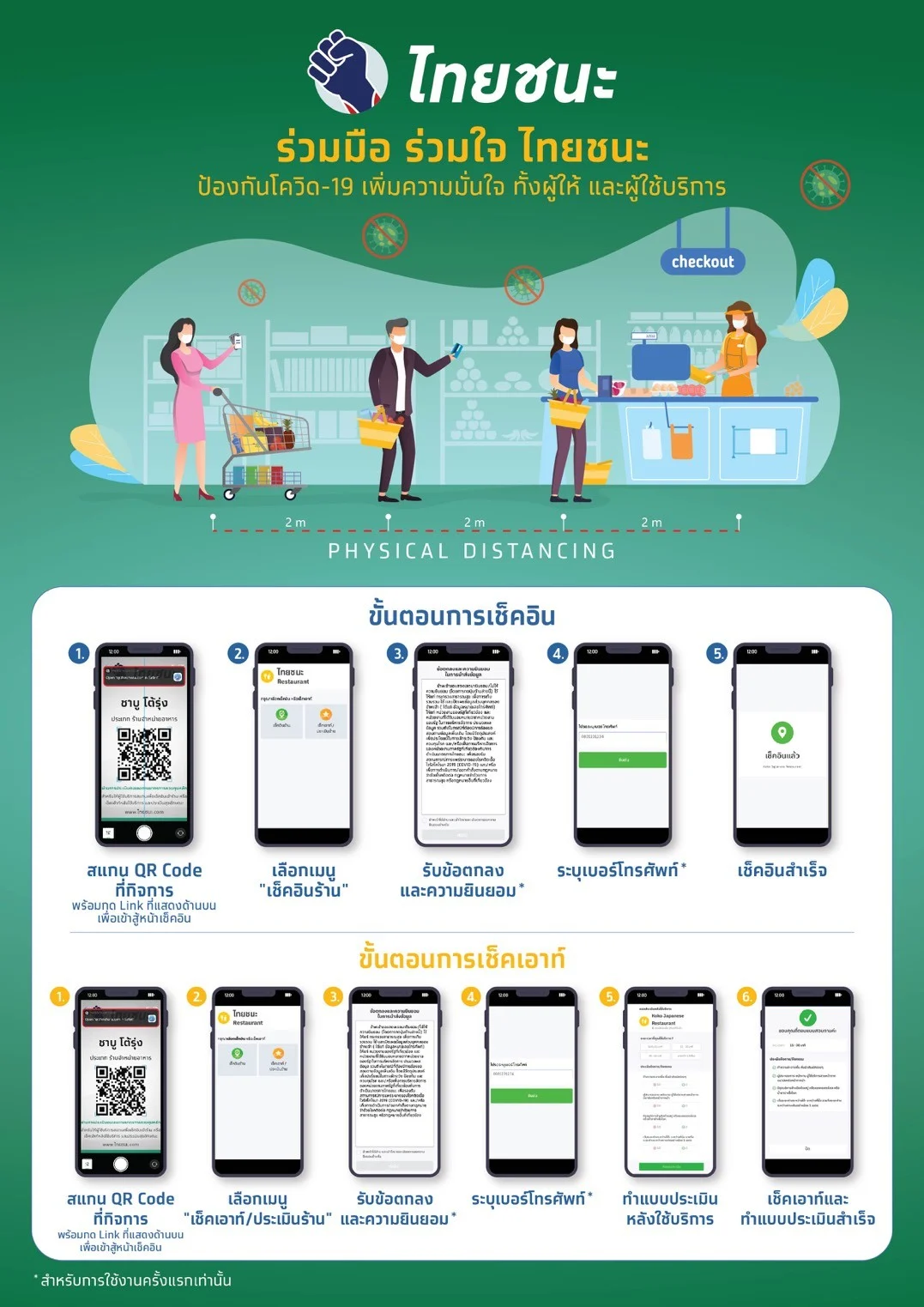 เปิดวิธีใช้ “ไทยชนะ” แพลตฟอร์มวิถีใหม่ไปห้าง-ร้าน ใช้ติดตามควบคุมโรคไวรัสโควิด-19 ห้างร้านต้องลงทะเบียนรับคิวอาร์โค้ด ส่วนประชาชนผู้ใช้บริการต้องเรียนรู้วิธีเช็กอิน-เช็กเอาท์