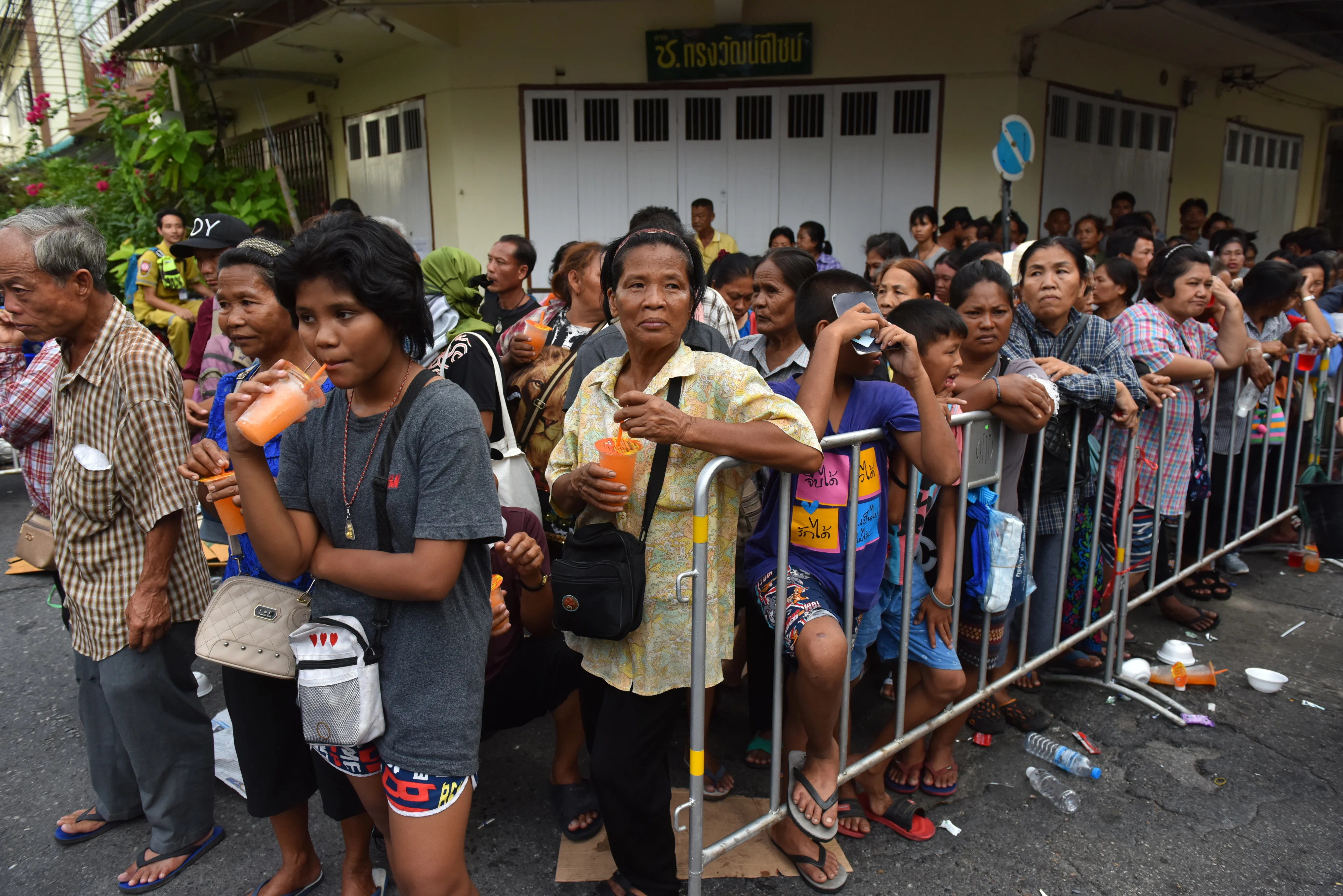 คนแห่เข้าคิวรับข้าวสารฟรี ในงานทิ้งกระจาด ที่จัดโดยมูลนิธิป่อเต็กตึ๊ง ส่งเสียงเศรษฐกิจไม่ดี ค่าครองชีพสูง