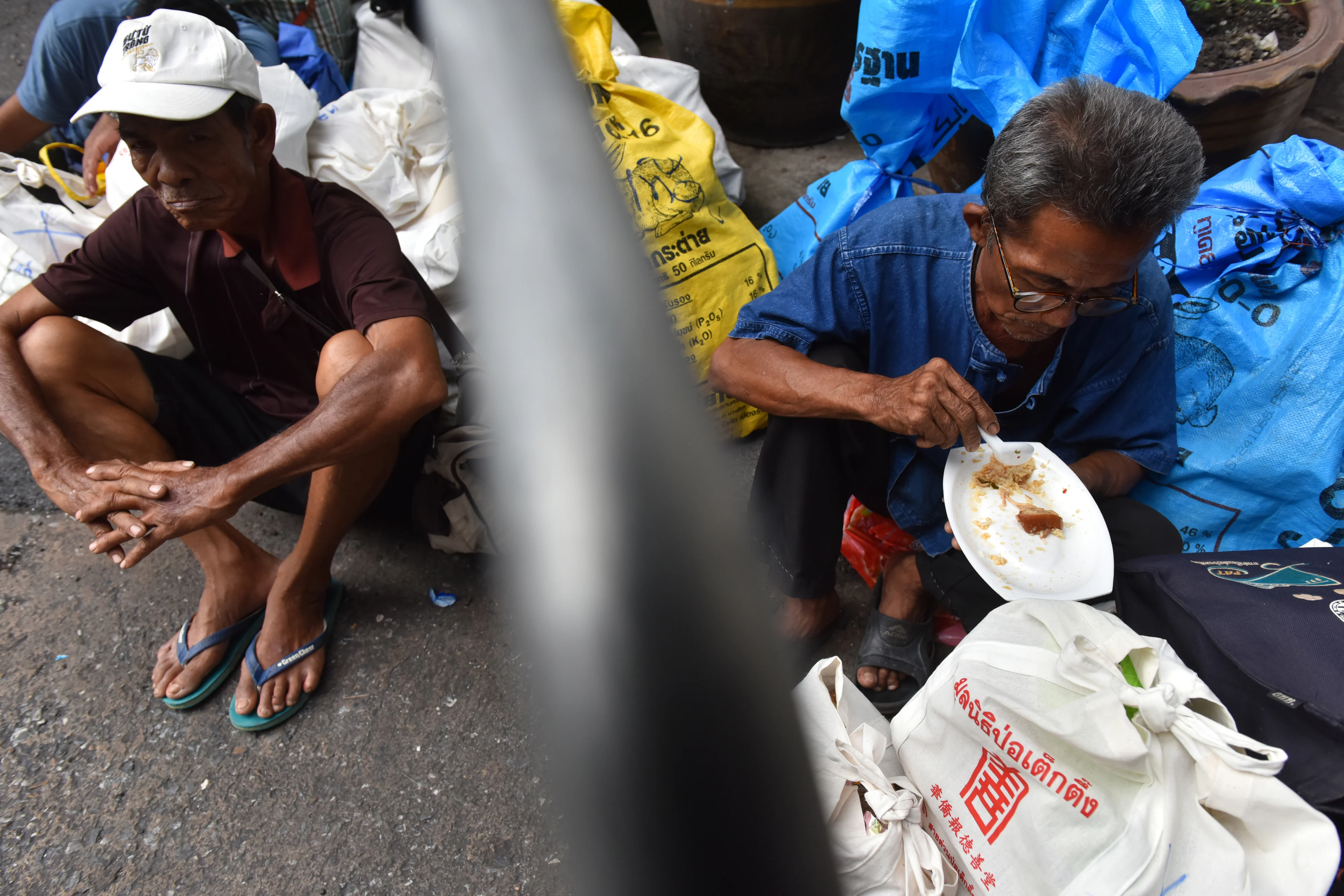 ผู้สูงอายุ ทานอาหารที่มูลนิธิป่อเต็กตึ๊งนำมาแจก ภาพโดย ภานุมาศ สงวนวงษ์ Thai News Pix