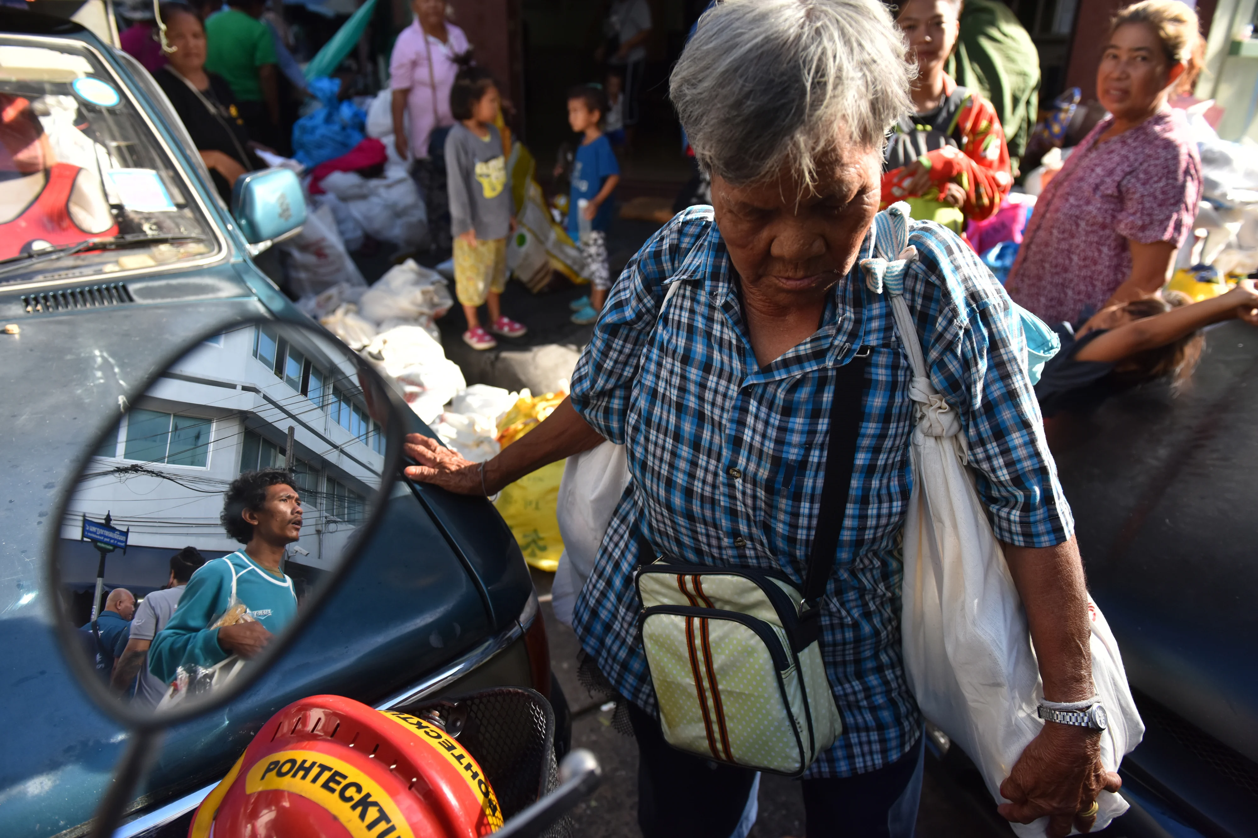 ผู้สูงอายุต่อคิวรอรับข้าวสาร ภาพโดย ภานุมาศ สงวนวงษ์ Thai News Pix
