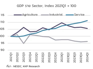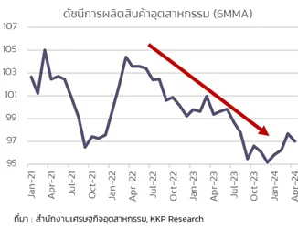 - KKP Research เผยภาคอุตสาหกรรมไทยในปัจจุบันอยู่ในภาวะที่อ่อนแอซึ่งสะท้อนจากทั้งดัชนีการผลิตที่หดตัวลงติดต่อกันเกินกว่า 1 ปี ยอดปิดโรงงานที่เพิ่มขึ้น และหนี้เสียในภาคการผลิตที่กำลังเร่งตัว