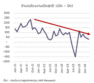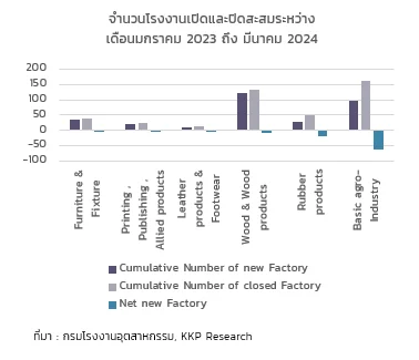 จึงทำให้ยอดการเปิดโรงงานสุทธิ (จำนวนโรงงานเปิดหักลบด้วยโรงงานปิด) ในภาพรวมชะลอตัวลงอย่างมาก จากค่าเฉลี่ยที่เป็นบวกสุทธิประมาณ 150 โรงงานต่อเดือน ลดลงเหลือเพียง 50 โรงงานต่อเดือน