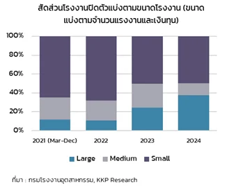 เนื่องจากโรงงานขนาดเล็กมีแนวโน้มที่จะเปราะบางกว่าโรงงานขนาดใหญ่ จากสถานะทางการเงินที่มีแนวโน้มอ่อนแอกว่าบริษัทใหญ่ การปิดตัวที่เกิดขึ้นจากโรงงานขนาดใหญ่เป็นหลักเป็นภาพสะท้อนว่าปัญหาการปิดตัวโรงงานเกิดจากปัจจัยเชิงโครงสร้างในภาพใหญ่ที่กระทบกับอุตสาหกรรมทั้งอุตสาหกรรม