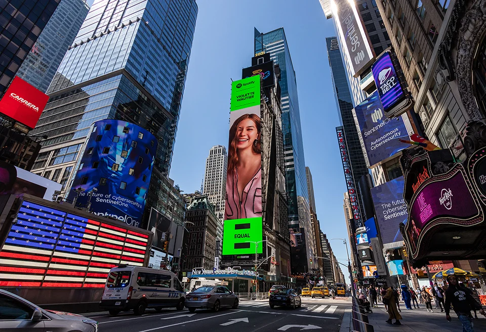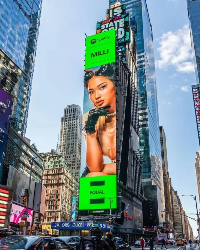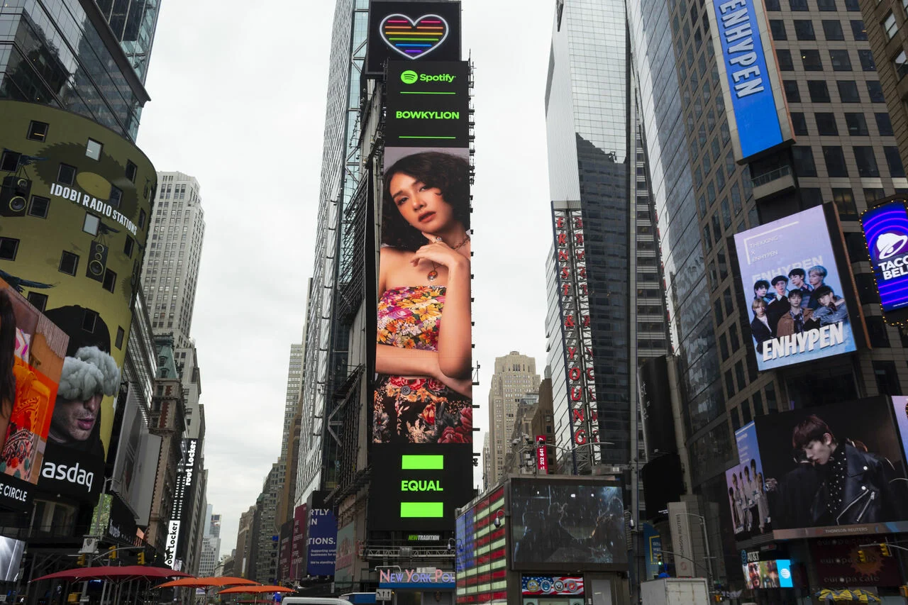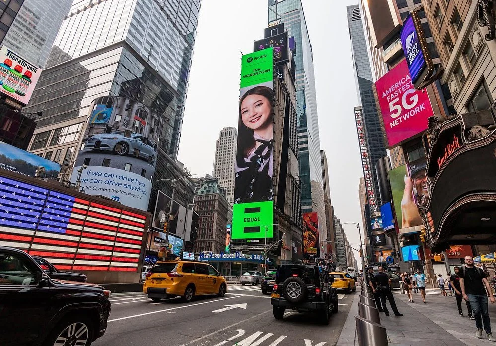 Spotify แอปพลิเคชันฟังเพลงระดับโลก จึงได้ริเริ่มโครงการ EQUAL ที่คัดเลือก ‘ศิลปินหญิง’ จำนวน 35 คน จาก 50 ประเทศ เพื่อแสดงพลังและความเท่าเทียม ซึ่งที่ผ่านมาเราได้เห็นโฉมหน้าของศิลปินหญิงจากทั่วโลกสลับขึ้นบิลบอร์ดยักษ์กลางไทม์สแควร์ มหานครนิวยอร์ก ไม่ว่าจะเป็น Billie Eilish, Griff จากประเทศอังกฤษ หรือจะเป็น CHAI วงดนตรีหญิงล้วนจากญี่ปุ่น และแน่นอนว่าหนึ่งในนั้นมีศิลปินหญิงจากประเทศไทยรวมอยู่ด้วย มาดูกันว่า ที่ผ่านมา มีใครเคยขึ้นป้ายยักษ์นี้มาแล้วบ้าง