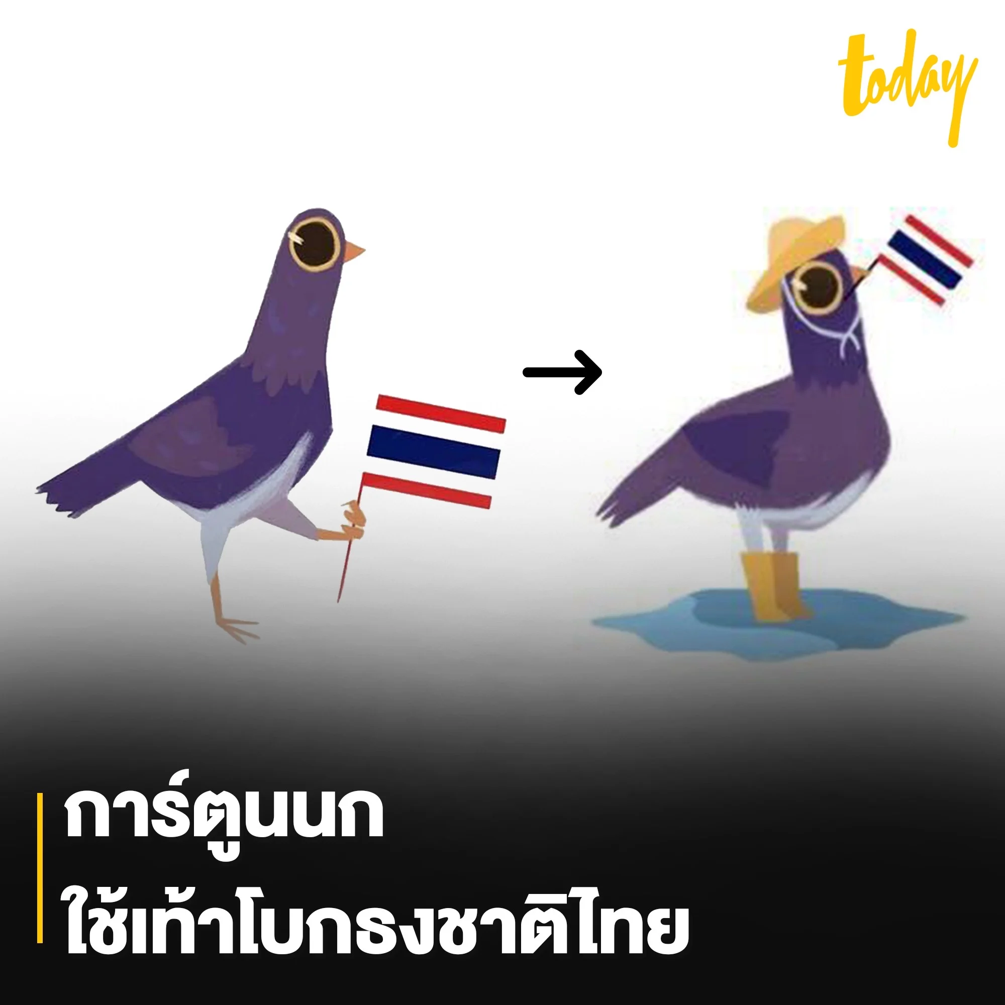 การ์ตูนนกใช้เท้าโบกธงชาติไทย