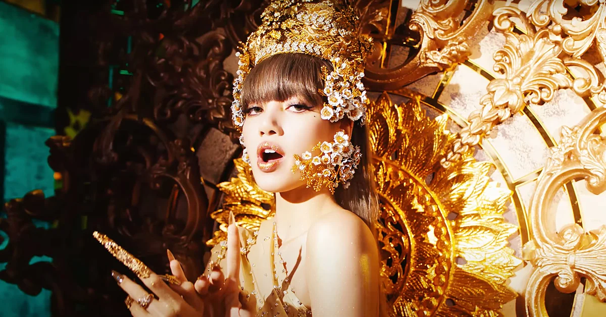 (ภาพ ลิซ่า สวมรัดเกล้ายอด ในมิวสิควิดีโอเพลง LALISA)