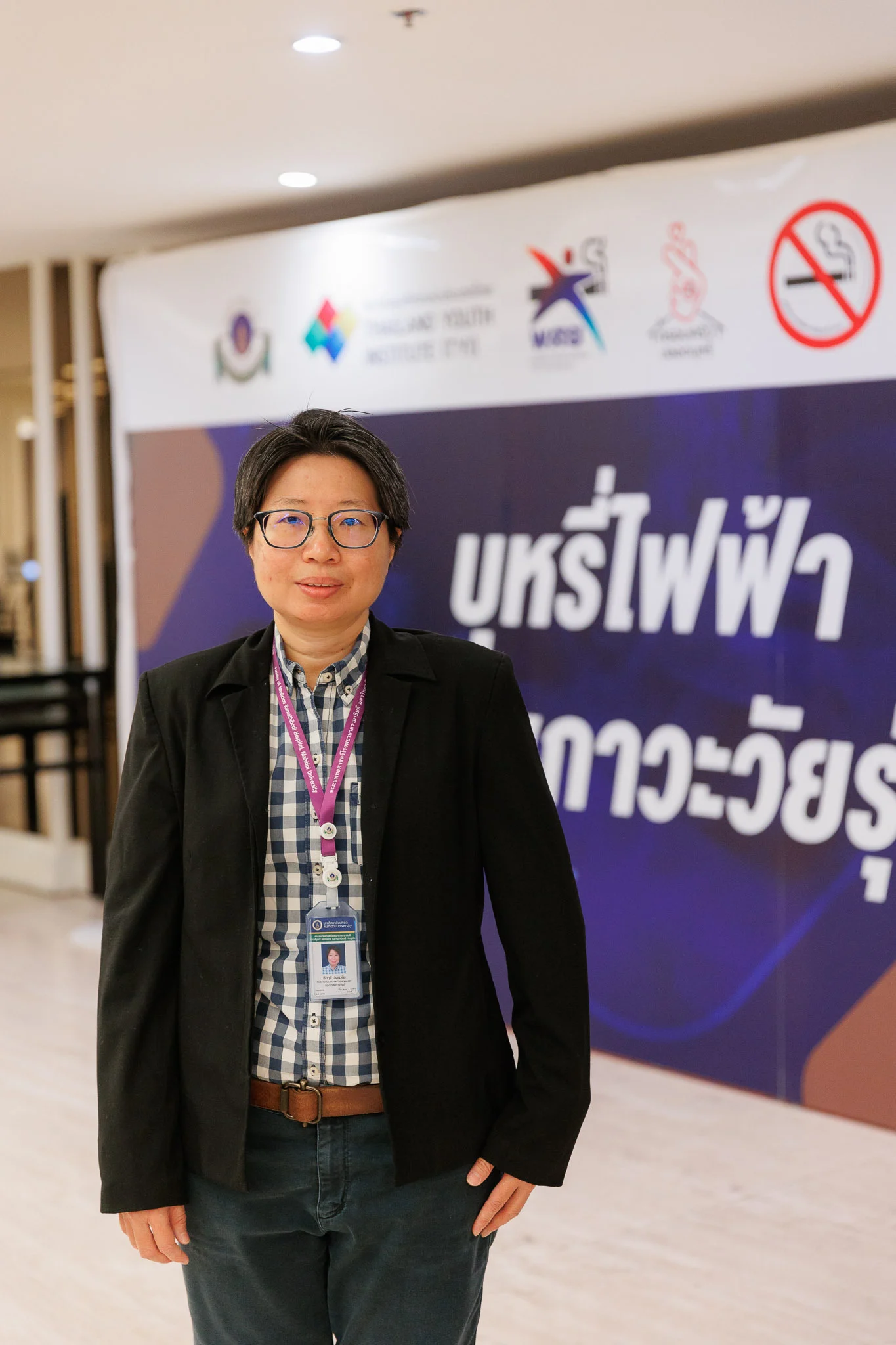 “นักสูบบุหรี่ไฟฟ้ามีจำนวนเพิ่มขึ้นทุกปีและมีแนวโน้มที่นักสูบจะมีอายุน้อยลงเรื่อยๆ ในปี 2567-2568 นี้ คณะแพทยศาสตร์โรงพยาบาลรามาธิบดี ร่วมกับ สสส. สถาบันวิจัยระบบสาธารณสุข (สวรส.) และภาคีเครือข่าย ทำการสำรวจสุขภาพประชาชนไทยโดยการตรวจร่างกาย ครั้งที่ 7 ซึ่งมีการสำรวจเกี่ยวกับการใช้บุหรี่ไฟฟ้าของกลุ่มอายุตั้งแต่ 10 ปีขึ้นไปด้วย ข้อมูลเบื้องต้นหลังจากเก็บข้อมูลไปแล้ว 40% พบเด็กและเยาวชน อายุ 15-29 ปี มีแนวโน้มการใช้บุหรี่ไฟฟ้าเพิ่มขึ้น จาก 5.8% ในปี 2562 เป็น 12.2% สะท้อนให้เห็นถึงการเปลี่ยนแปลงพฤติกรรมการสูบบุหรี่วัยรุ่นอย่างชัดเจนในกลุ่มเด็กและเยาวชนไทย ทุกภาคส่วนจึงต้องรณรงค์สร้างความรู้ ความเข้าใจเกี่ยวกับอันตรายของบุหรี่ไฟฟ้า และส่งเสริมการป้องกันนโยบายหรือมาตรการควบคุมการสูบบุหรี่ในกลุ่มวัยรุ่นอย่างจริงจัง ซึ่งข้อมูลฉบับสมบูรณ์คาดว่าจะแล้วเสร็จภายในปีนี้ จะทำให้ทราบสถานการณ์การสูบบุหรี่ไฟฟ้าของคนไทยอย่างละเอียดมากขึ้น” รศ.ดร.พญ.เริงฤดี กล่าว