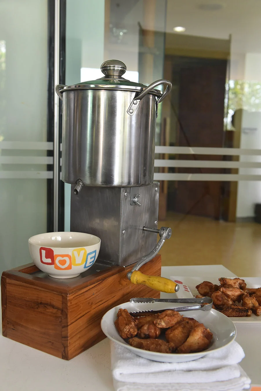 สำหรับ “รางวัลชนะเลิศระดับอาชีวศึกษา” ได้แก่ “เครื่องสลัดน้ำมันจากการทอด” ทีม“ต้นยางสารภี” ซึ่งเป็นผลงานของ นายจอมขวัญ ลุงตำ และนายเทพพิทักษ์ อินคำ จากวิทยาลัยเทคนิคสารภี จังหวัดเชียงใหม่ จากพฤติกรรมนิยมอาหารทอดของคนไทย จึงออกแบบเครื่องสลัดน้ำมัน โดยใช้หลักการปั่นผ้าแห้งของเครื่องซักผ้า ใช้แรงเหวี่ยงหมุนสะบัดเพื่อให้เหลือน้ำมันตกค้างในอาหารน้อยที่สุด มีขนาดเล็กราคาถูกสามารถใช้ได้ในครัวเรือน หรือพัฒนาให้เหมาะสมกับเชิงพาณิชย์ได้ สิ่งที่สำคัญก็คือสามารถกระตุ้นให้ผู้บริโภคตระนักถึงการดูแลรักษาสุขภาพ จากการได้มองเห็นถึงความเสี่ยงต่อโรคต่าง ๆ ที่เกิดขึ้นจากน้ำมันปริมาณจำนวนมากที่ต้องรับประทานเข้าไปในแต่ละเมนู