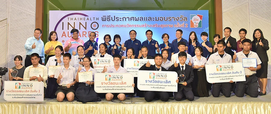 “สสส. เชื่อมั่นในพลังคนรุ่นใหม่ ที่จะสร้างสรรค์สิ่งใหม่เพื่อเปลี่ยนสุขภาวะของคนในสังคมให้ดียิ่งขึ้น จึงได้จัดทำ โครงการประกวดนวัตกรรมสร้างเสริมสุขภาพ: THAIHEALTH INNO AWARDS ซึ่งในครั้งนี้ถือเป็นครั้งที่ 2 ของการแข่งขัน จากโจทย์หลักคือ ความอยากที่จะเปลี่ยนสังคมรอบตัวด้วยแนวคิดนวัตกรรมสร้างเสริมสุขภาพ เพื่อแก้ปัญหาหรือส่งเสริมสุขภาพของชุมชน หรือในเชิงประเด็นทางสังคมที่สามารถขยายผลในวงกว้างได้ โดยแบ่งการประกวดออกเป็น 2 ระดับคือ ระดับมัธยมศึกษาตอนปลาย และระดับประกาศนียบัตรวิชาชีพ (ปวช. หรือเทียบเท่า) โดยมีผลงานจากนักเรียนระดับมัธยมและอาชีวศึกษา ร่วมส่งเข้าผลงานทั้งสิ้น 132 ทีม และมีทีมที่ผ่านเข้ารอบสุดท้าย 18 ทีม ซึ่ง สสส. ไม่ได้มุ่งหวังเพียงแค่การประกวดเพื่อให้ได้ชิ้นงานนวัตกรรมสร้างเสริมสุขภาพ แต่มุ่งหวังที่จะสร้าง “เมล็ดพันธุ์นักนวัตกรรมสร้างเสริมสุขภาพ” ที่เกิดขึ้นทั้งลูกศิษย์และครู เพื่อบ่มเพาะแนวคิดของการเป็นนักนวัตกรรมสร้างเสริมสุขภาพอย่างต่อเนื่อง รวมถึงการต่อยอดผลงานให้สามารถขยายผลในวงกว้างเพื่อสร้างเสริมสุขภาพให้กับทุกคนในสังคมไทย”