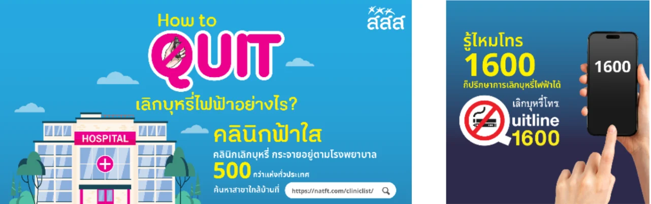เพื่อช่วยเลิกบุหรี่และบุหรี่ไฟฟ้า ทุกวัน ไม่เว้นวันหยุดนักขัตฤกษ์ ตลอด 24 ชั่วโมง