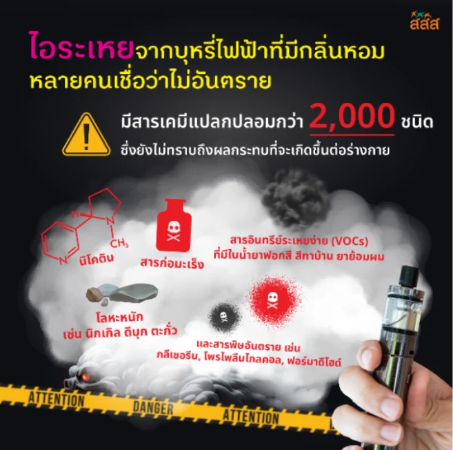 “บุหรี่ไฟฟ้าอันตรายกว่าที่คิดย่างไร?” สามารถอ่านข้อมูลเพิ่มเติมเกี่ยวกับบุหรี่ไฟฟ้าในทุกแง่มุม ได้ที่นี่ คู่มือ “บุหรี่ไฟฟ้าภัยร้ายซ่อนลึก” คลิกที่นี่