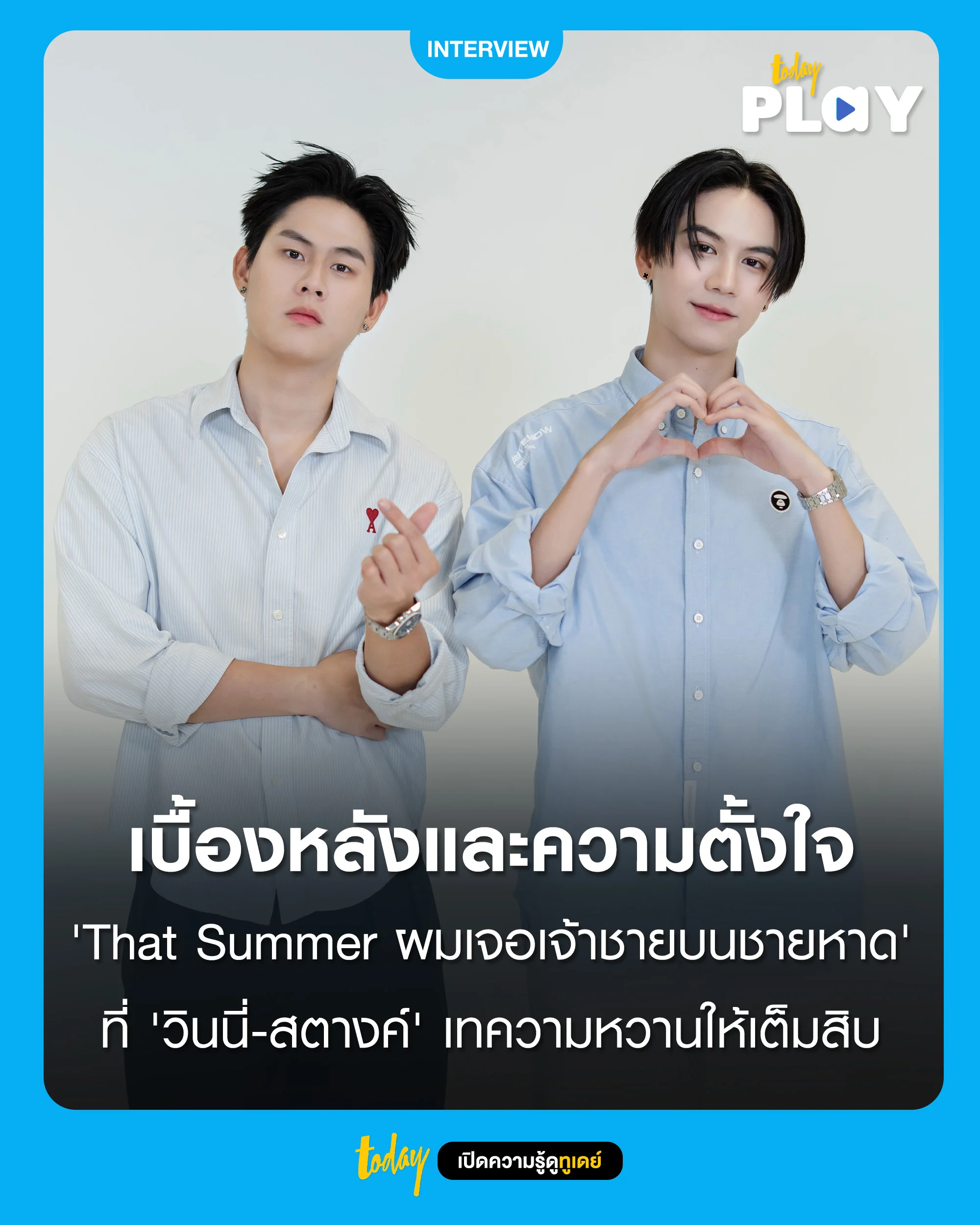 TODAY Play ไม่พลาดที่จะพาทั้ง 2 หนุ่ม วินนี่ และ สตางค์ มาร่วมพูดคุยถึงเบื้องหลังตัวละคร การทำงาน และเส้นทางที่กว่าจะมาเป็นซีรีส์ ‘That Summer ผมเจอเจ้าชายบนชายหาด’