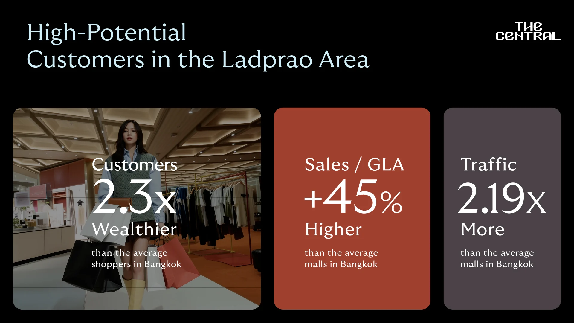ปัจจุบันพหลโยธินติดอันดับ Top 10 ทำเลที่ดินแพงที่สุดในประเทศไทย ด้วยราคาประเมินเฉลี่ย 1.9 ล้านบาทต่อตารางวา และอัตราการเติบโตสูงถึง 5% ต่อปี นอกจากนี้ยังมี Catchment Area กว่า 2.5 ล้านคน ครอบคลุมฐานผู้บริโภคหลากหลาย โดยเฉพาะกลุ่ม Wealth Segment ที่มีกำลังซื้อสูงกว่าค่าเฉลี่ยคนกรุงเทพฯ ถึง 2.3 เท่า