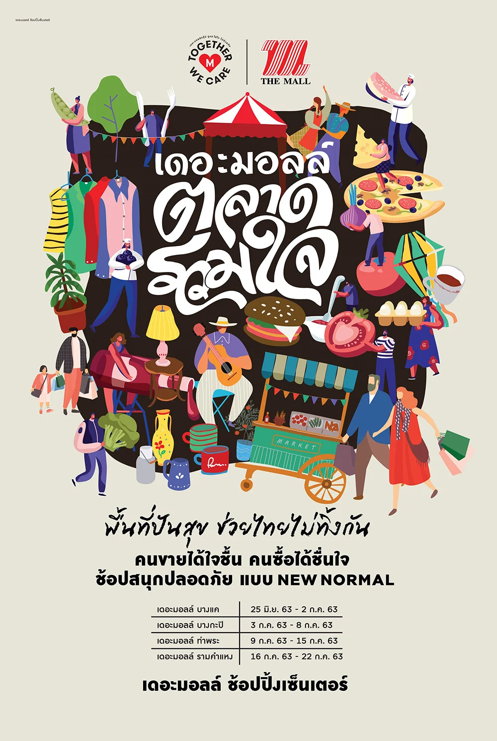 เดอะมอลล์ ช้อปปิ้งเซ็นเตอร์ เอาใจเหล่านักช้อป พร้อมช่วยเหลือพ่อค้า-แม่ค้ามือใหม่ ใจสู้!! จัดงาน เดอะมอลล์ ตลาดรวมใจ พื้นที่ปันสุข ช่วยไทยไม่ทิ้งกัน ช่วยเหลือประชาชนที่ได้รับผลกระทบจากวิกฤติโควิด-19 เปิดพื้นที่ศูนย์การค้าฟรีให้พ่อค้า-แม่ค้ามือใหม่ มาออกร้านค้าขายสินค้า โดยไม่คิดค่าใช้จ่าย ภายใต้โครงการ THE MALL TOGETHER MARKET หนึ่งในโครงการนำร่องสนับสนุนมาตรการต่างๆ ของรัฐบาลไทย และมุ่งสร้างงาน สร้างรายได้ กระตุ้นเศรษฐกิจของประเทศให้เดินหน้าต่อไป