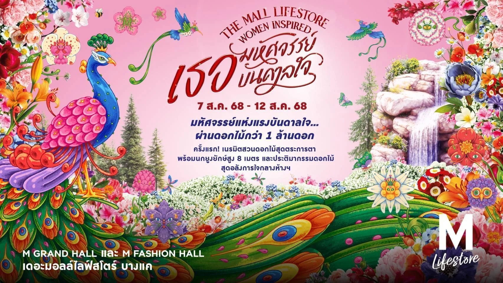 ในส่วนกิจกรรมการตลาดที่สร้าง Engagement Marketing การปลุกพลังสร้างแรงบันดาลใจ Emotional – Led Strategy ได้จัดกิจกรรม “The Mall Lifestore Women Inspired” เธอ..มหัศจรรย์บันดาลใจ ผ่านดอกไม้ 100 สายพันธุ์ กว่า 1 ล้านดอก” โดยเนรมิต เดอะมอลล์ไลฟ์สโตร์ บางแค ให้เป็น “สวนดอกไม้สุดตระการตา” พร้อมแลนด์มาร์ค นกยูงยักษ์สูงกว่า 8 เมตร และประติมากรรมดอกไม้สุดอลังการ ใจกลางห้างฯ พร้อมจัดแสดงแฟชั่นโชว์ผ้าไทย ชุด “เธอ..มหัศจรรย์ บันดาลใจ” ร่วมพูดคุย WOMEN INSPIRED TALK กับคู่แม่ลูกที่จะมาแบ่งปันมุมมองตัวแทนผู้หญิงเก่งที่ร่วมส่งต่อเรื่องราวดีๆต่างๆ