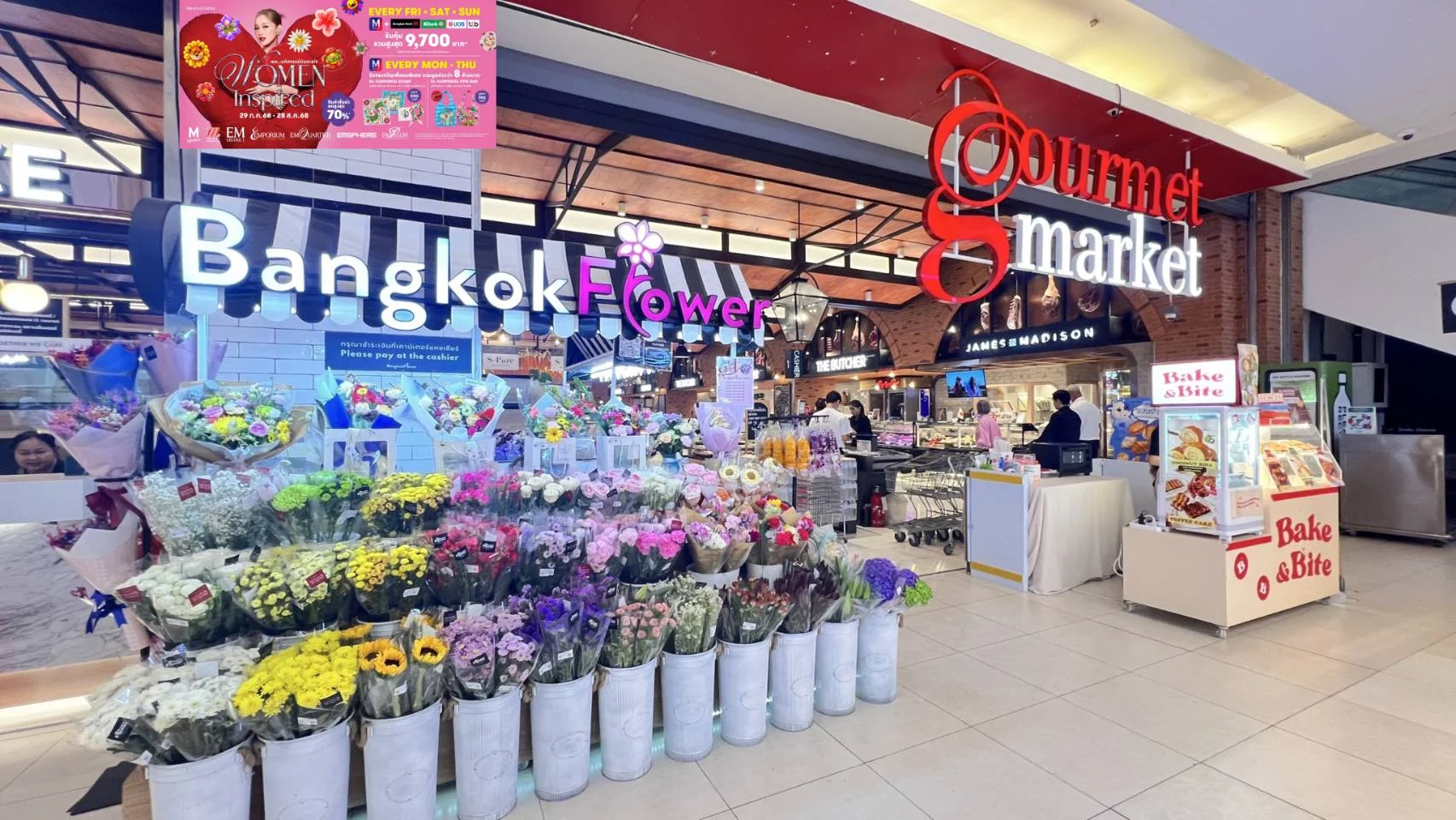 - สมาชิก M CARD ทุกวันจันทร์ – พฤหัสบดี รับของขวัญ Exclusive Collection ออกแบบโดยศิลปิน “ALANLERT” รับ Flowerful Scarf เมื่อช้อปสะสมภายในห้างฯ ครบ 3,000 บาทขึ้นไป/วัน หรือ รับ Flowerful Tote Bag เมื่อช้อปภายในห้างฯ แผนก Gourmet Market และ Home Fresh Mart ครบ 1,500 บาทขึ้นไป/ใบเสร็จ