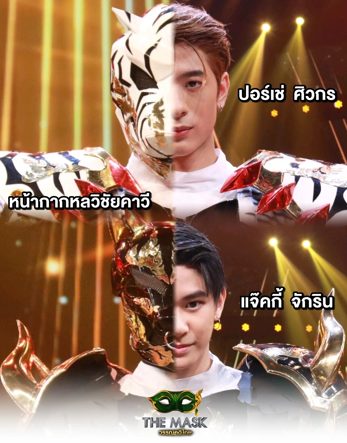 แล้วก็เป็นไปตามความคาดหมาย เมื่อภายใต้หน้ากากหลวิชัยคาวีเผยออกมาเป็นสองหนุ่ม “ปอร์เช่-แจ็คกี้” เรียกเสียงกรี๊ดและน้ำตาแฟนเพลงไปอย่างท่วมท้น ซึ่งทั้งคู่ได้แสดงออกมาอย่างสุดพลังและสุดหัวใจจริงๆ