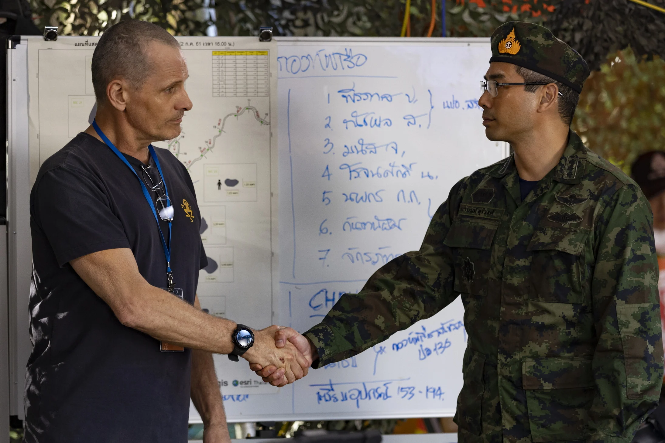 Viggo Mortensen (left) as Rick Stanton and Thiraphat ‘Tui’ Sajakul (right) as Capt. Arnot Sureewong in THIRTEEN LIVES, directed by Ron Howard, a Metro Goldwyn Mayer Pictures film.