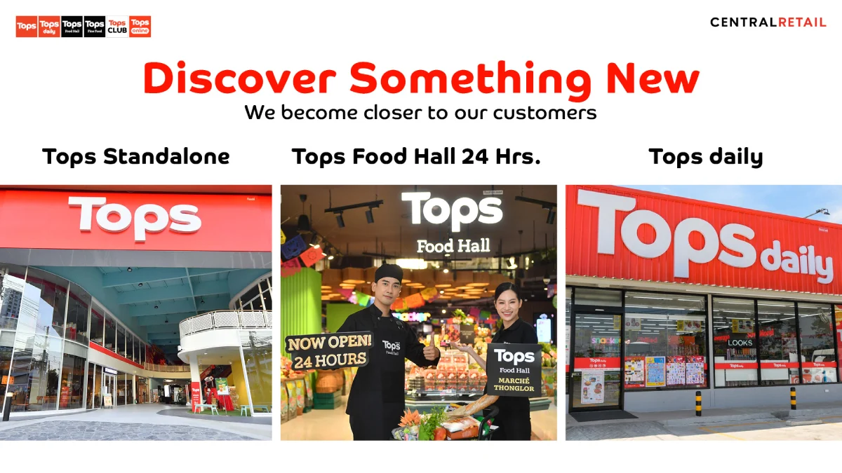 ไม่ว่าจะเป็น ท็อปส์ สแตนด์อโลน และท็อปส์ ฟู้ด ฮอลล์ ที่เปิดให้บริการ 24 ชั่วโมง เพื่อตอบโจทย์ไลฟ์สไตล์และเติมเต็มความต้องการของลูกค้ายุคใหม่ได้อย่างแท้จริง ตามเป้าหมายการเป็น Food Destination & Discovery อันดับหนึ่งที่ครองใจผู้บริโภค